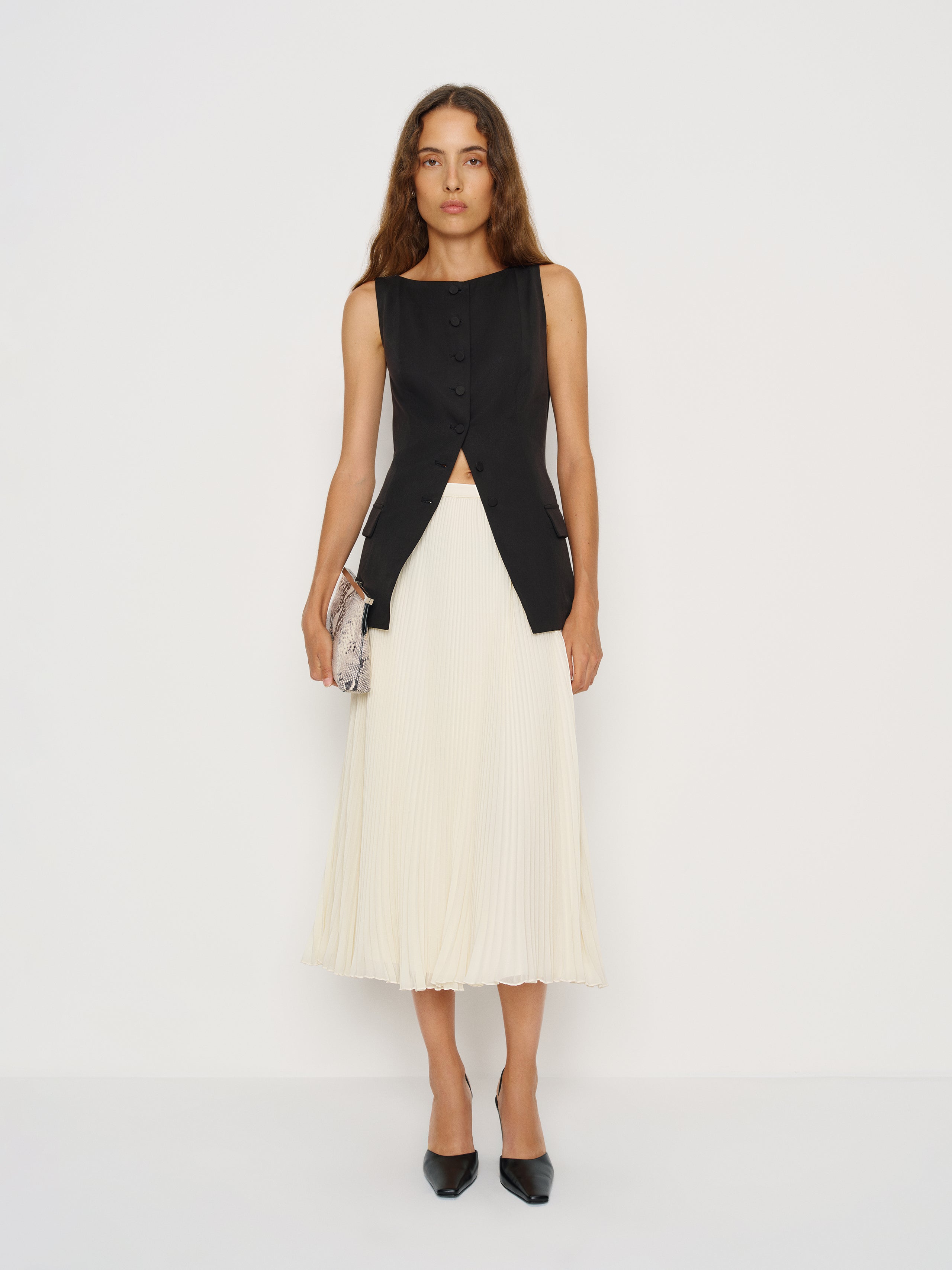 Looks great with a gust of wind. Shop the Kella Skirt from Reformation, a mid rise midi...
