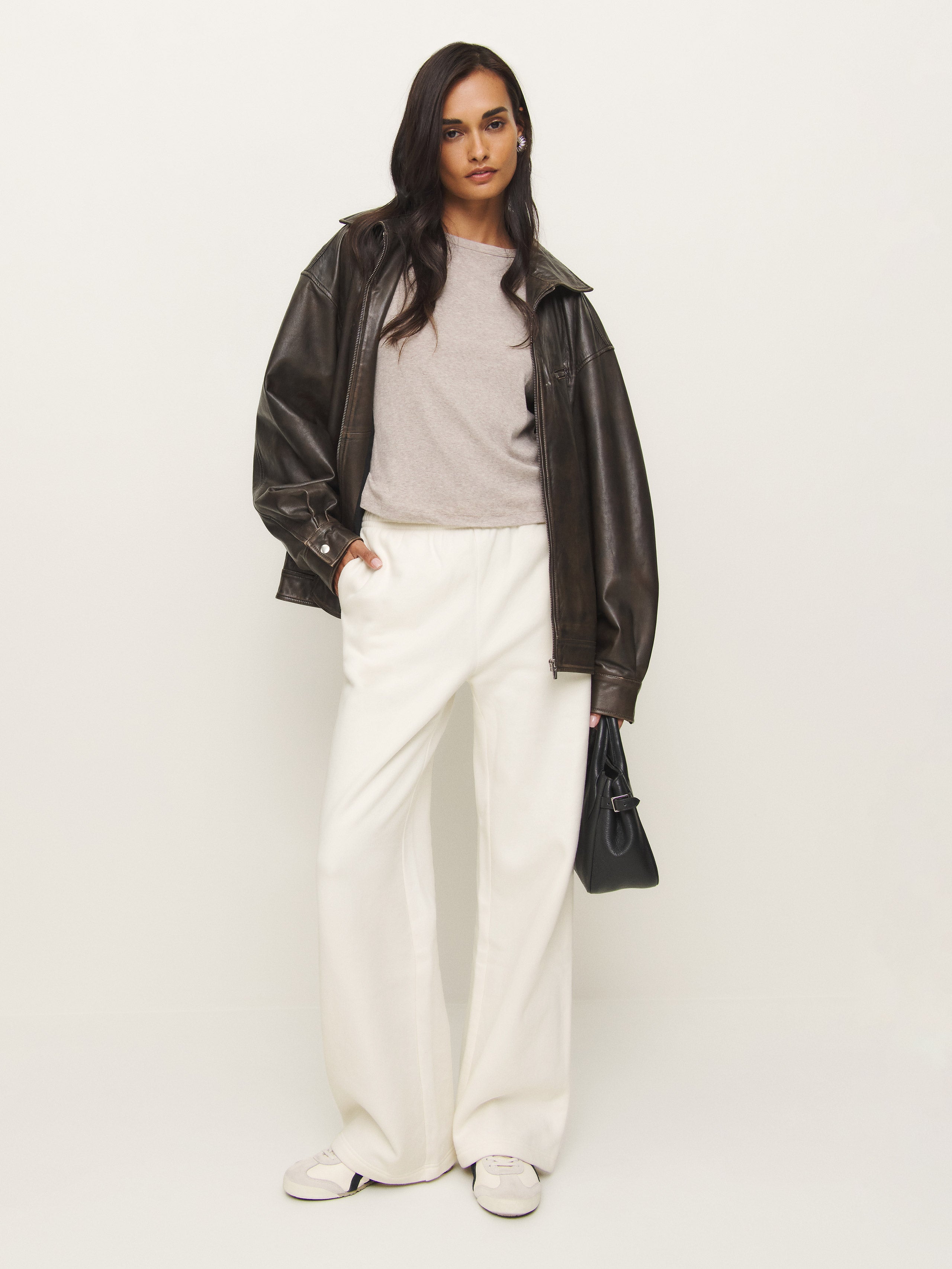 Shop the Kira Wide Leg Sweatpant from Reformation, a wide-leg sweatpant with a relaxed fit.