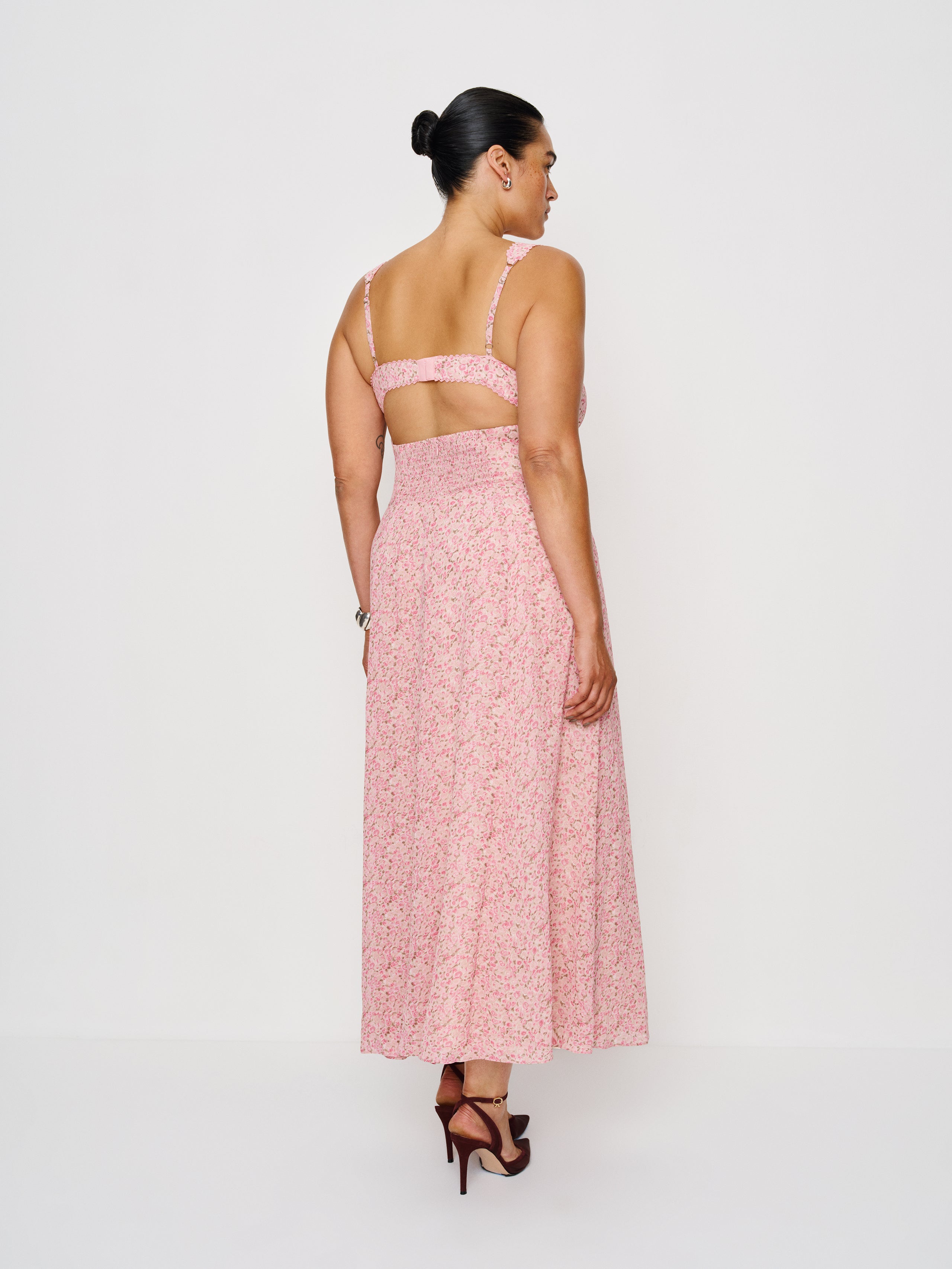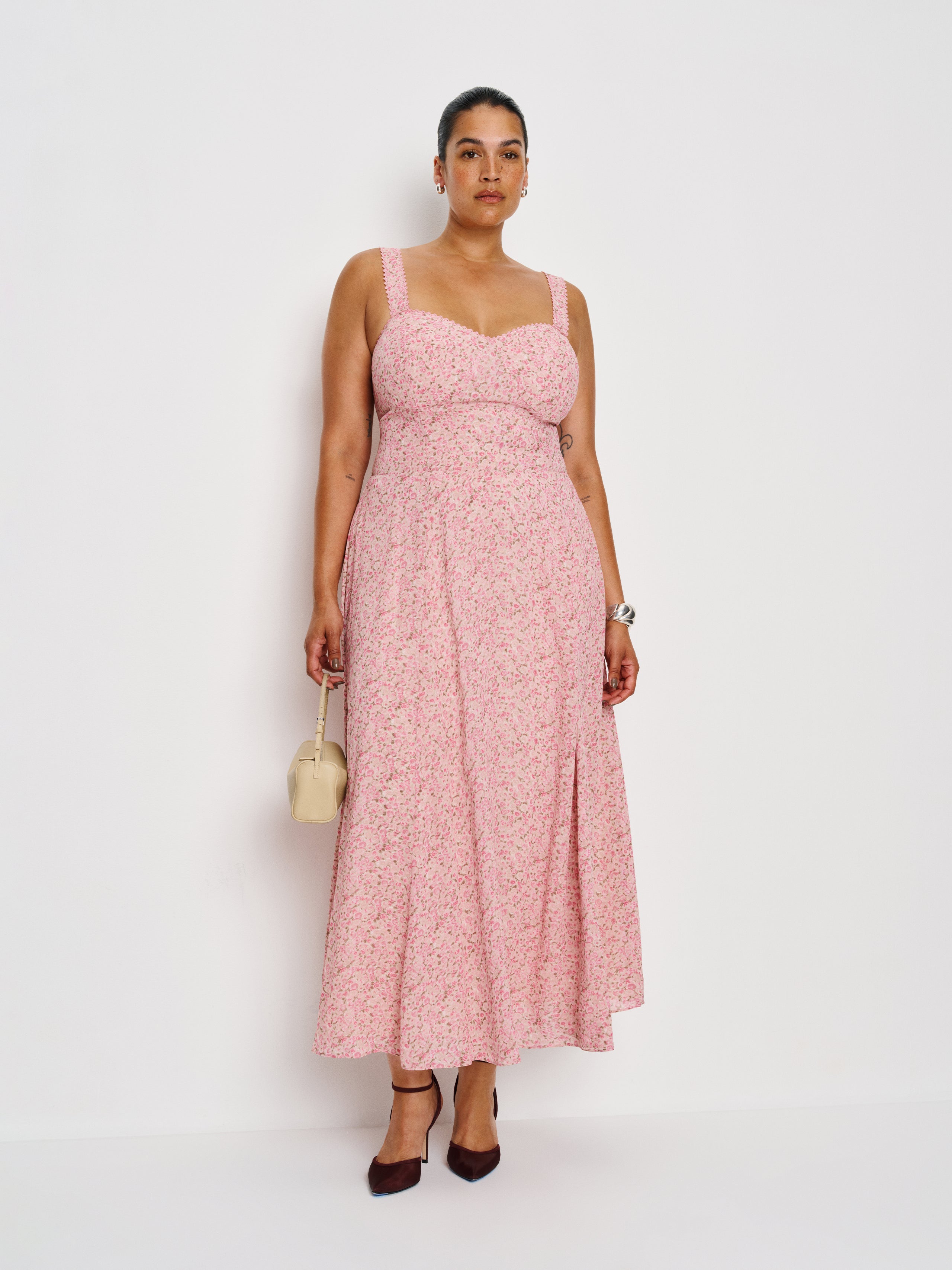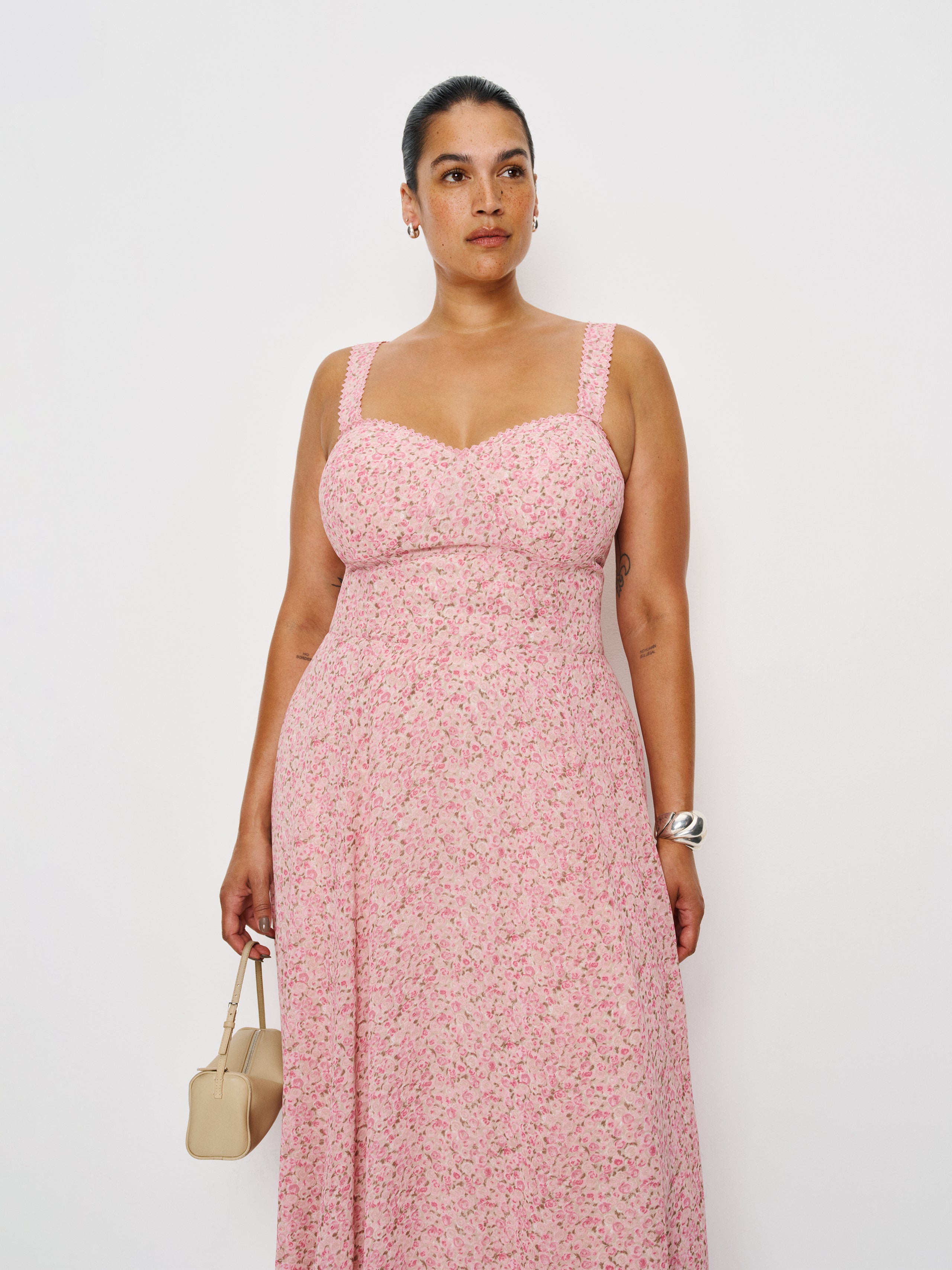 Wear the dress. Shop the Lela Dress ES from Reformation, a sleeveless midi dress with a sweetheart neckline and lace trim at the neckline.