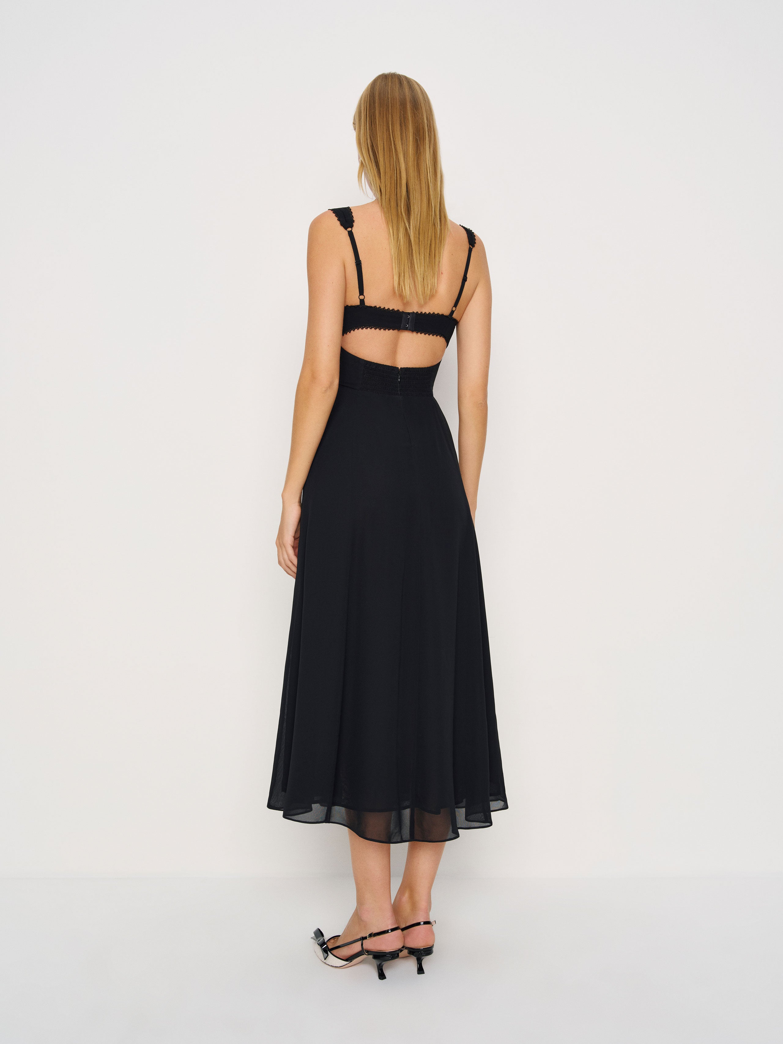 Wear the dress. Shop the Lela Dress from Reformation, a sleeveless midi dress with a sweetheart neckline...