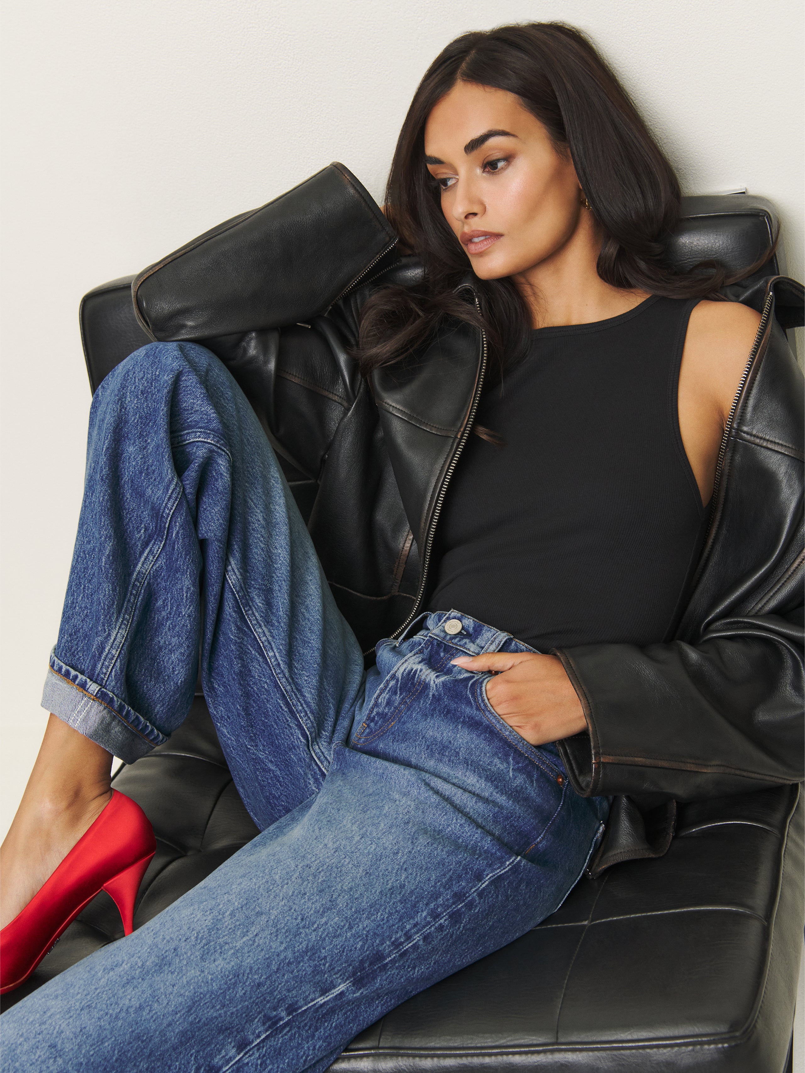 Up top. Shop the Leni Knit Bodysuit from Reformation, a sleeveless knit bodysuit with a high scoop...