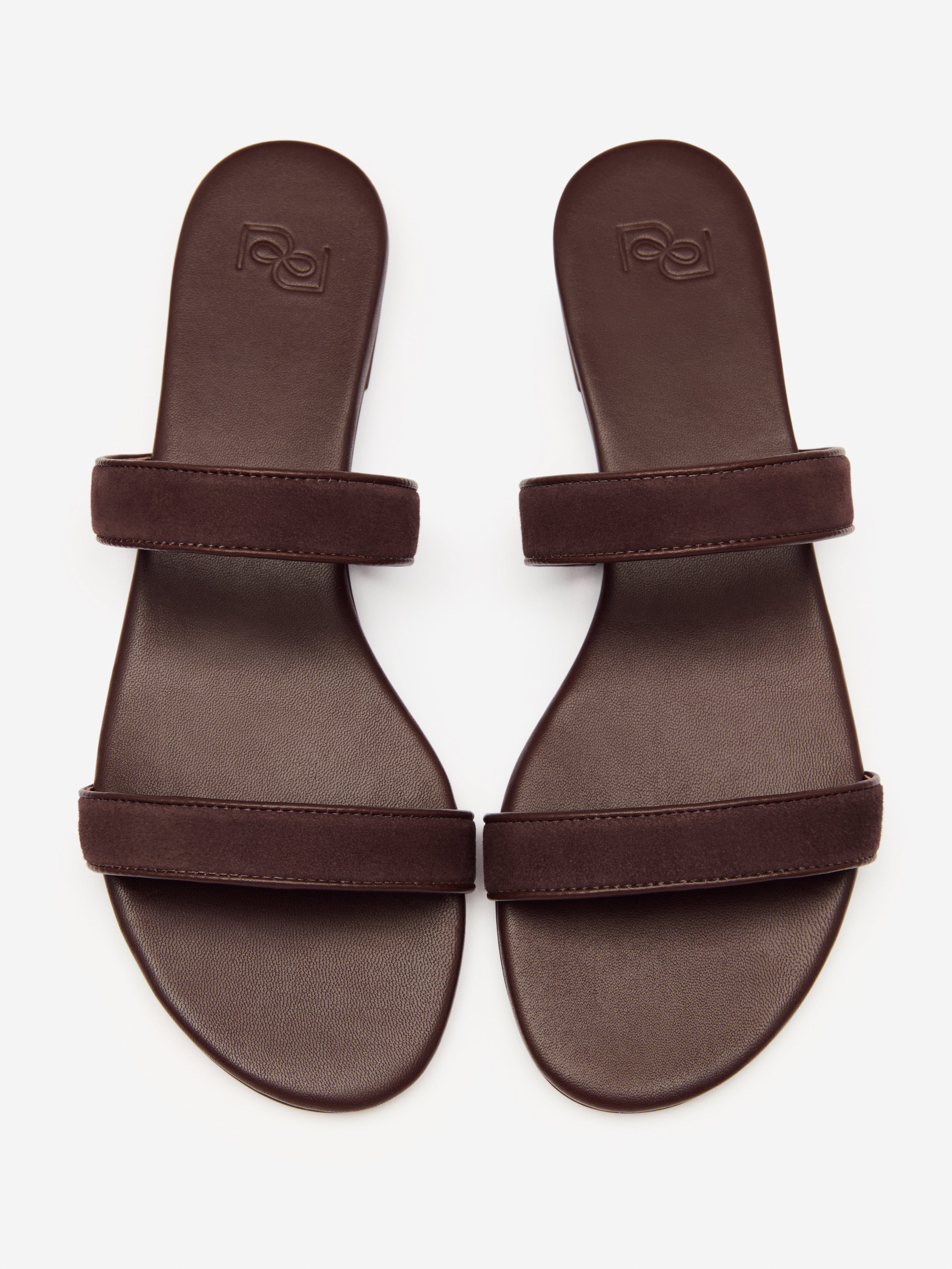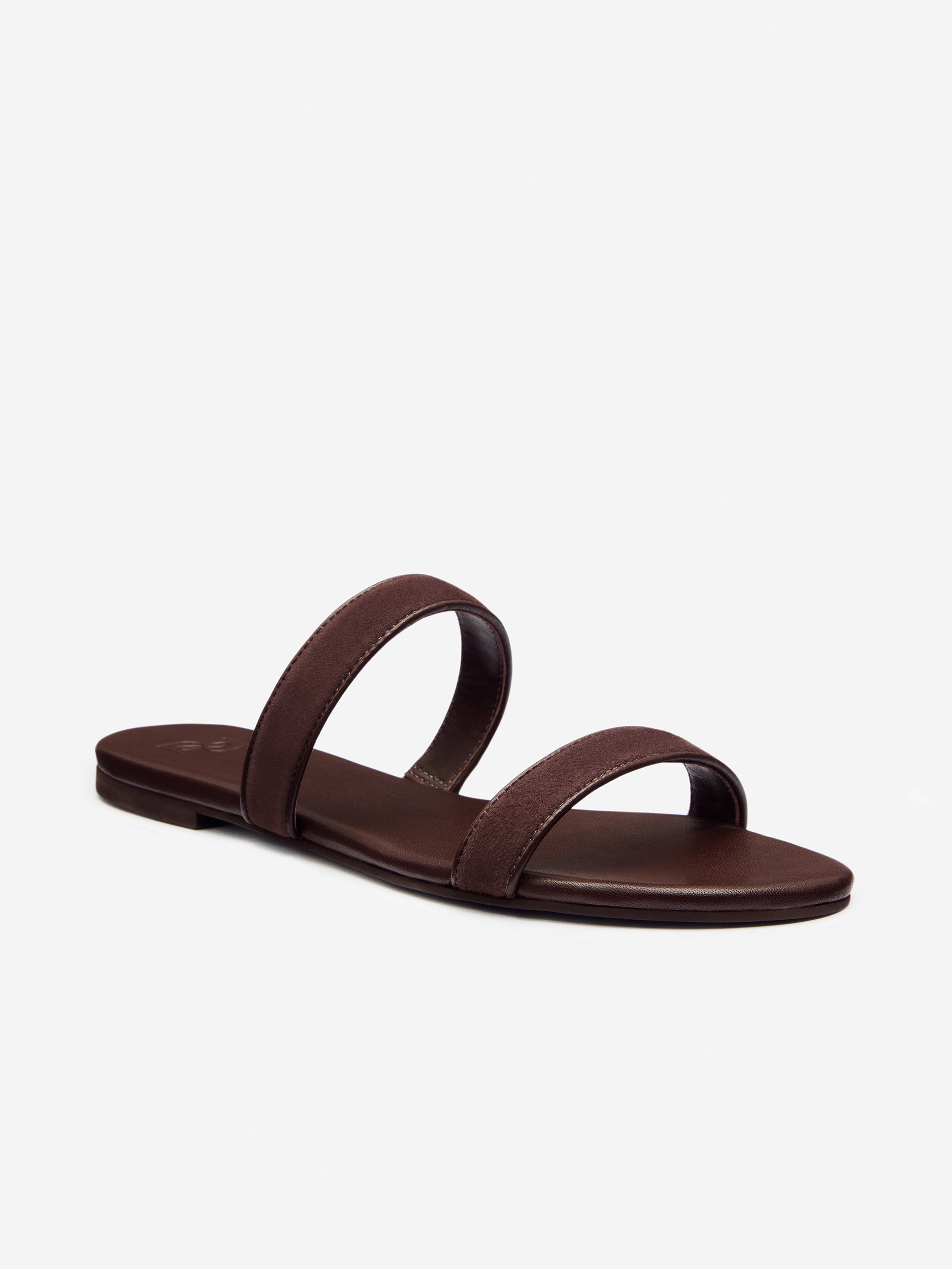 Wear me. Shop the Lenora Flat Sandal from Reformation, a slide on flat sandal with a round toe and double strap detailing.