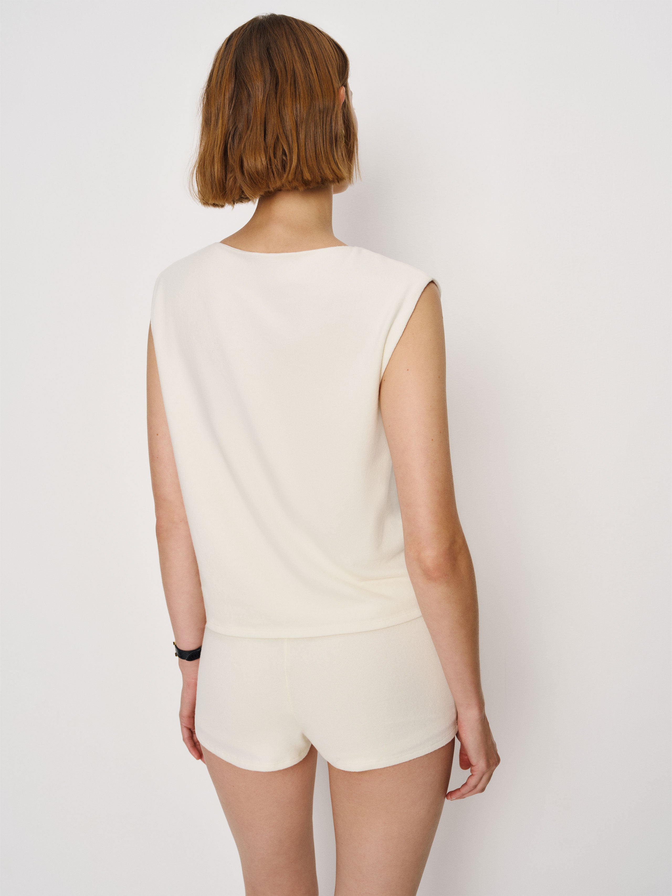 In case of getting dressed. Shop the Leo Knit Two Piece from Reformation, a two-piece set with a sleeveless relaxed boat neck top and fitted mini shorts.