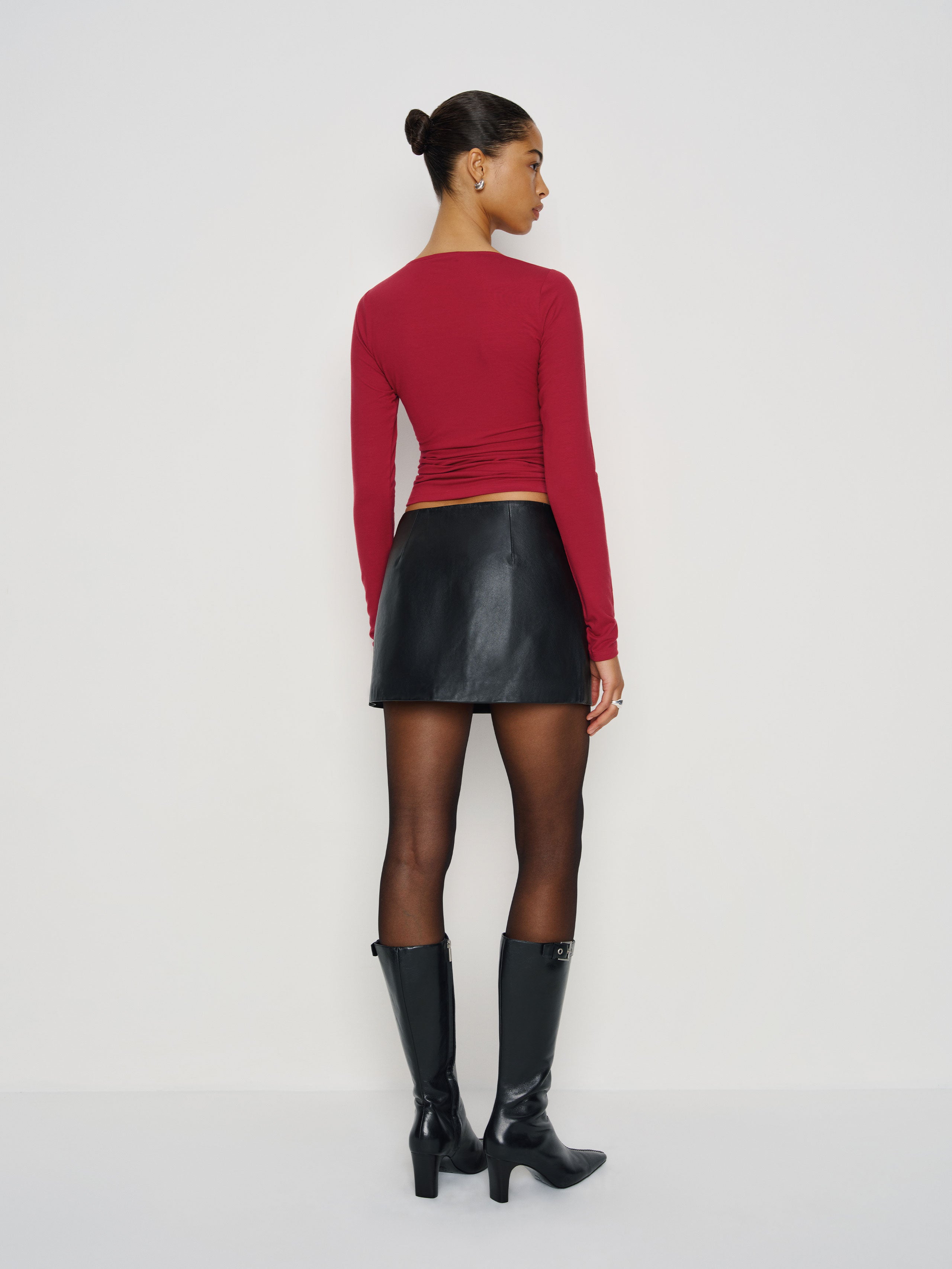 Comfort zone. Shop the Liam Knit Top from Reformation, a long-sleeved top with a crew neckline and ruching details. A not-so-basic basic.