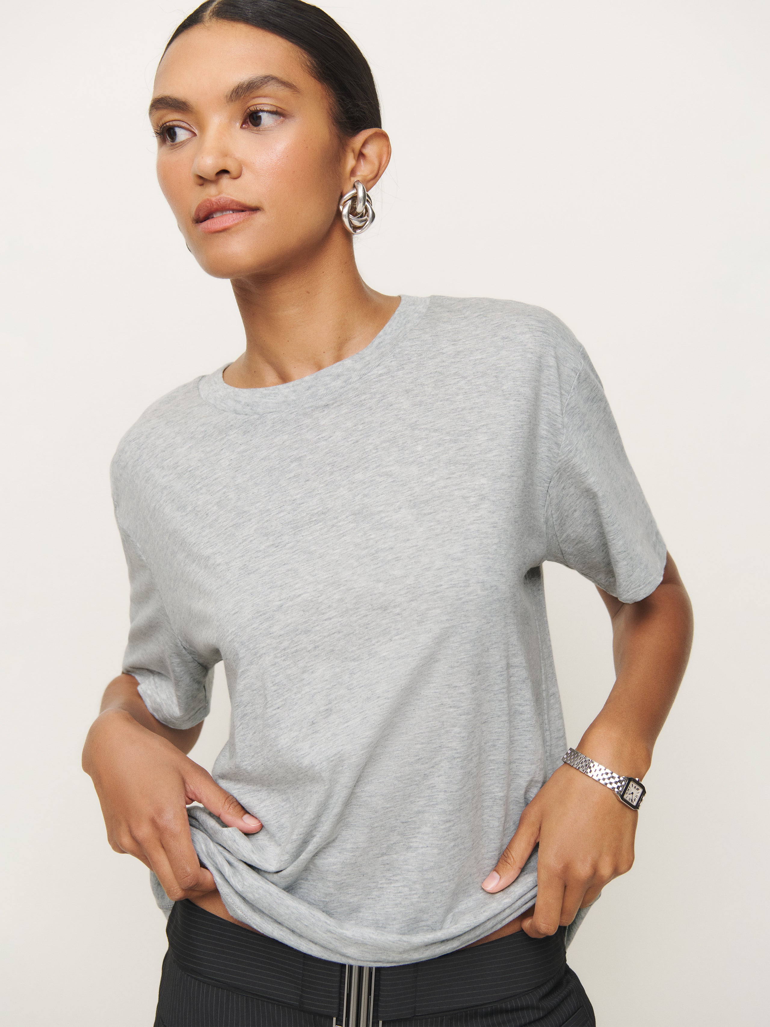 Shop the Liam Oversized Tee from Reformation, an oversized tee with a relaxed fit and crew neckline.