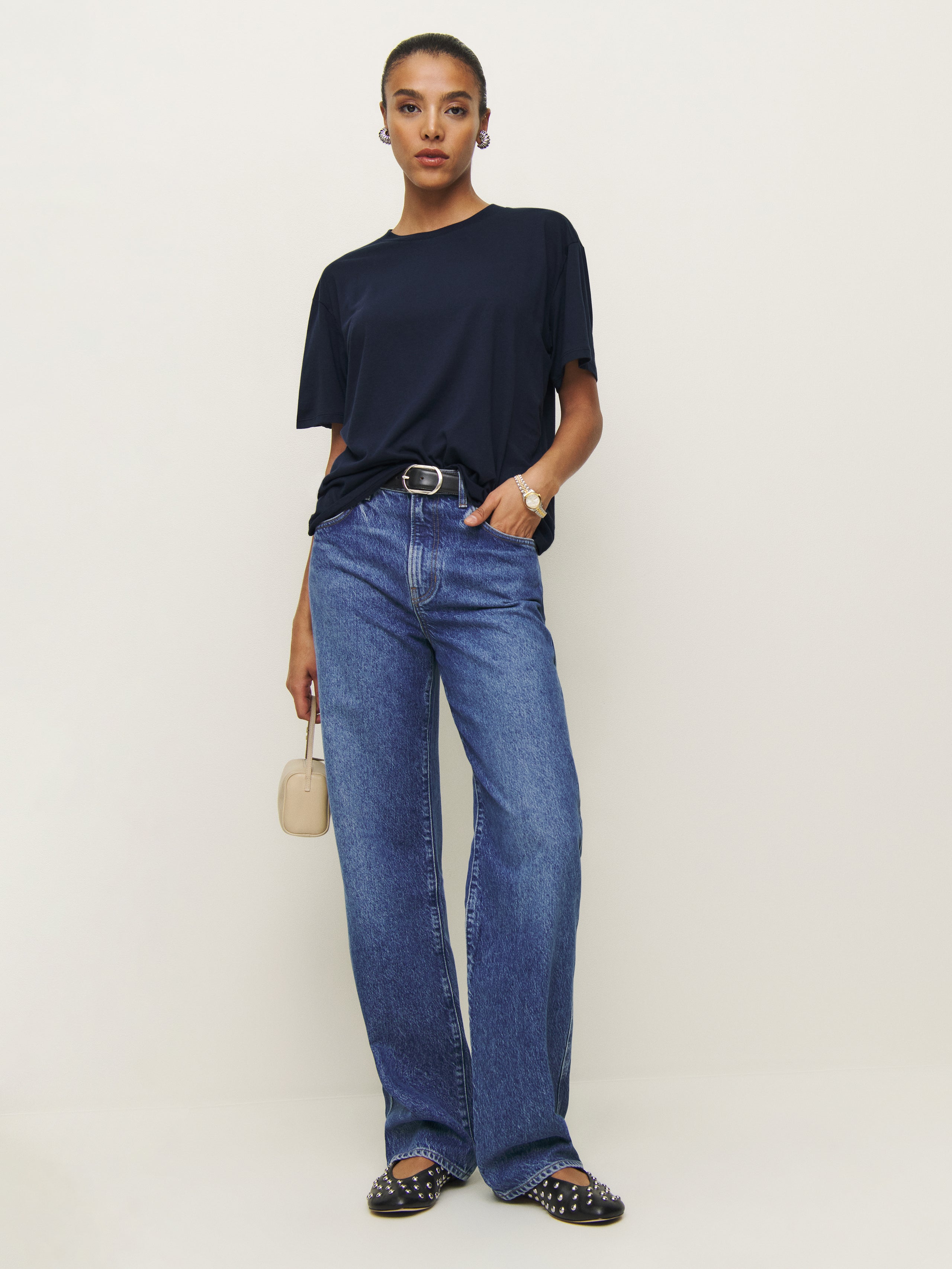 Shop the Liam Oversized Tee from Reformation, an oversized tee with a relaxed fit and crew neckline.