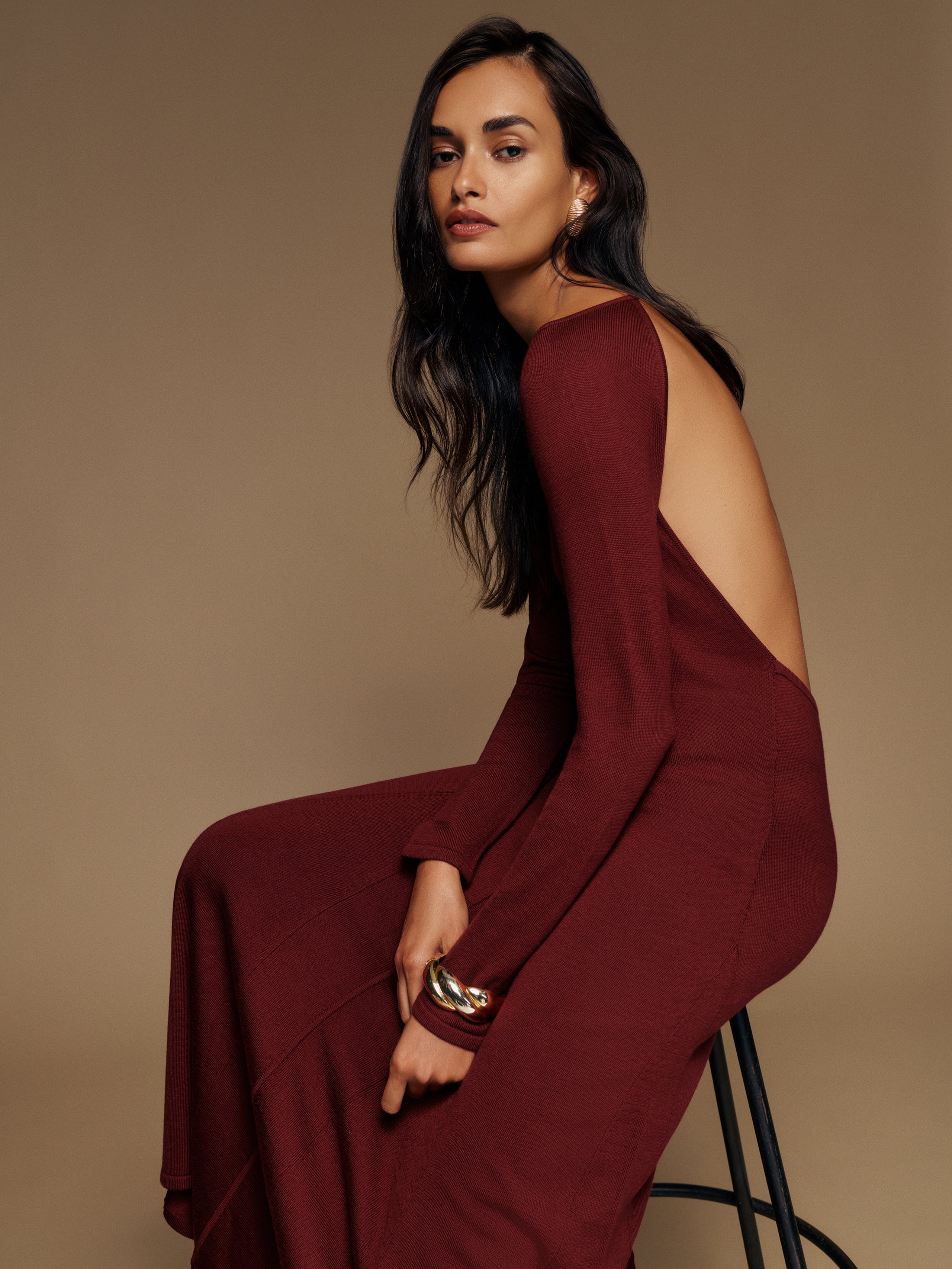 How classic. Shop the Livia Regenerative Merino Sweater Dress from Reformation, a long-sleeve maxi sweater dress with an open back.