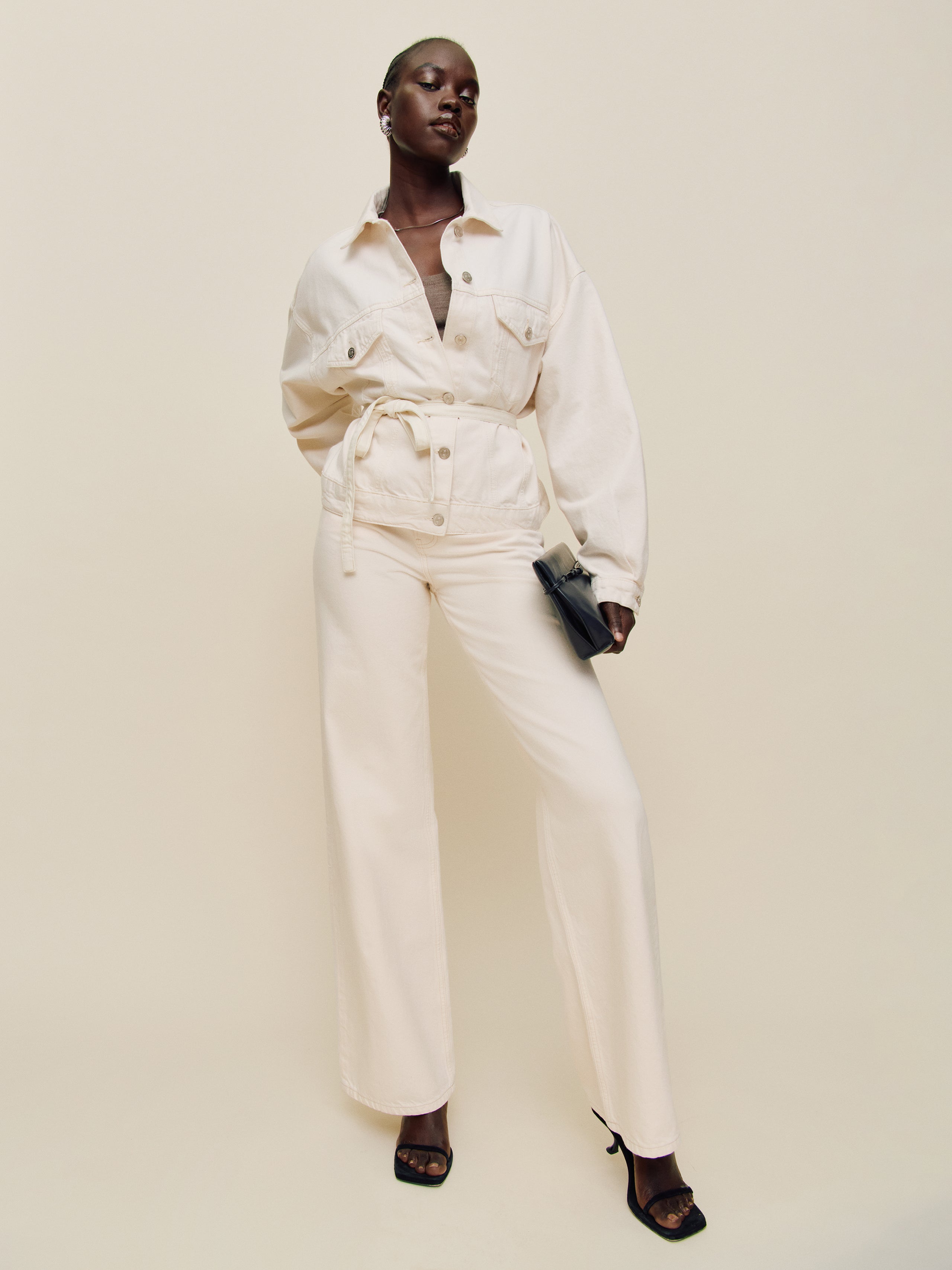Denim time. Shop the Luna Belted Denim Jacket from Reformation, a relaxed-fit denim jacket with a collared neckline and belt at the waist.