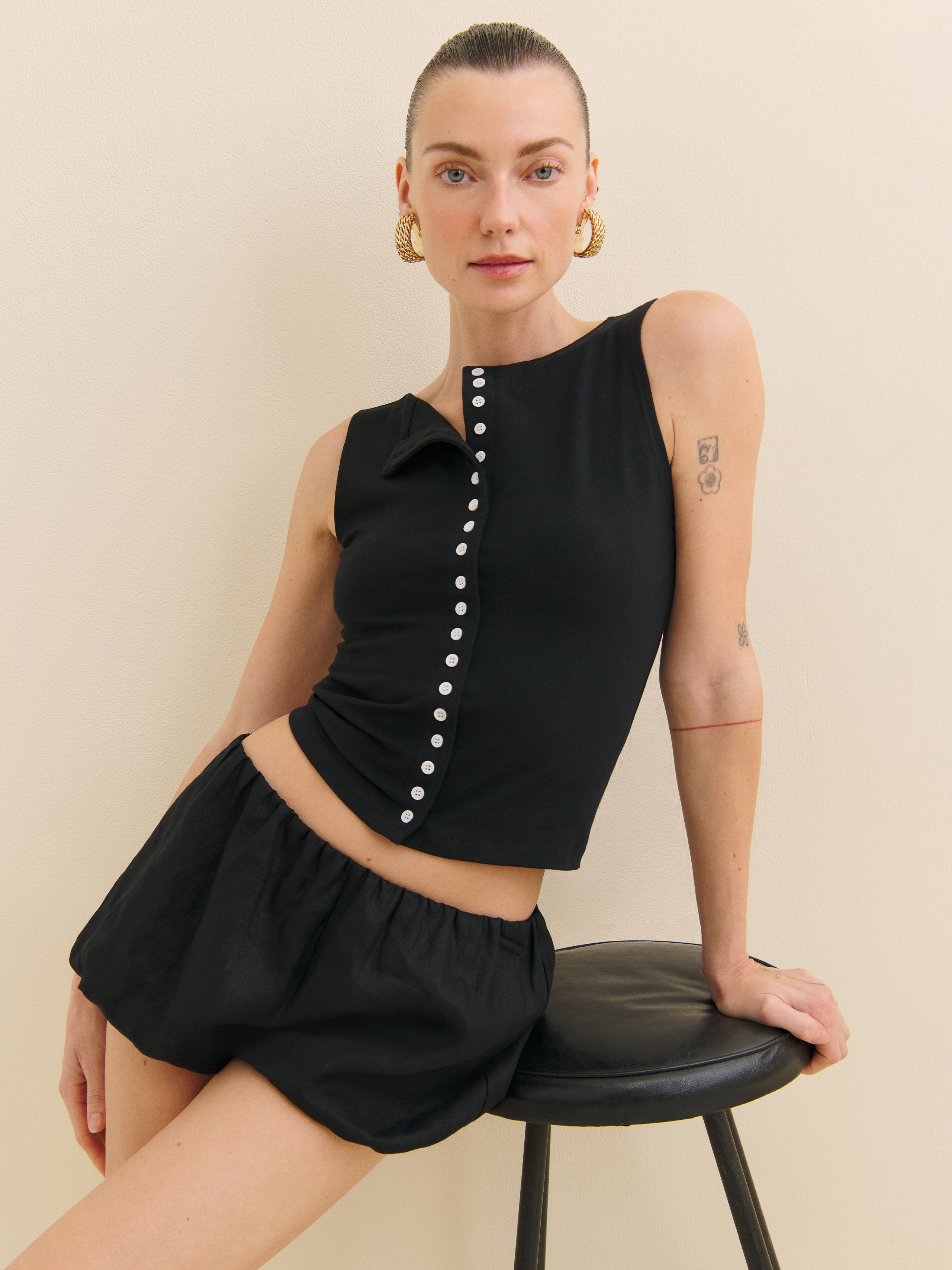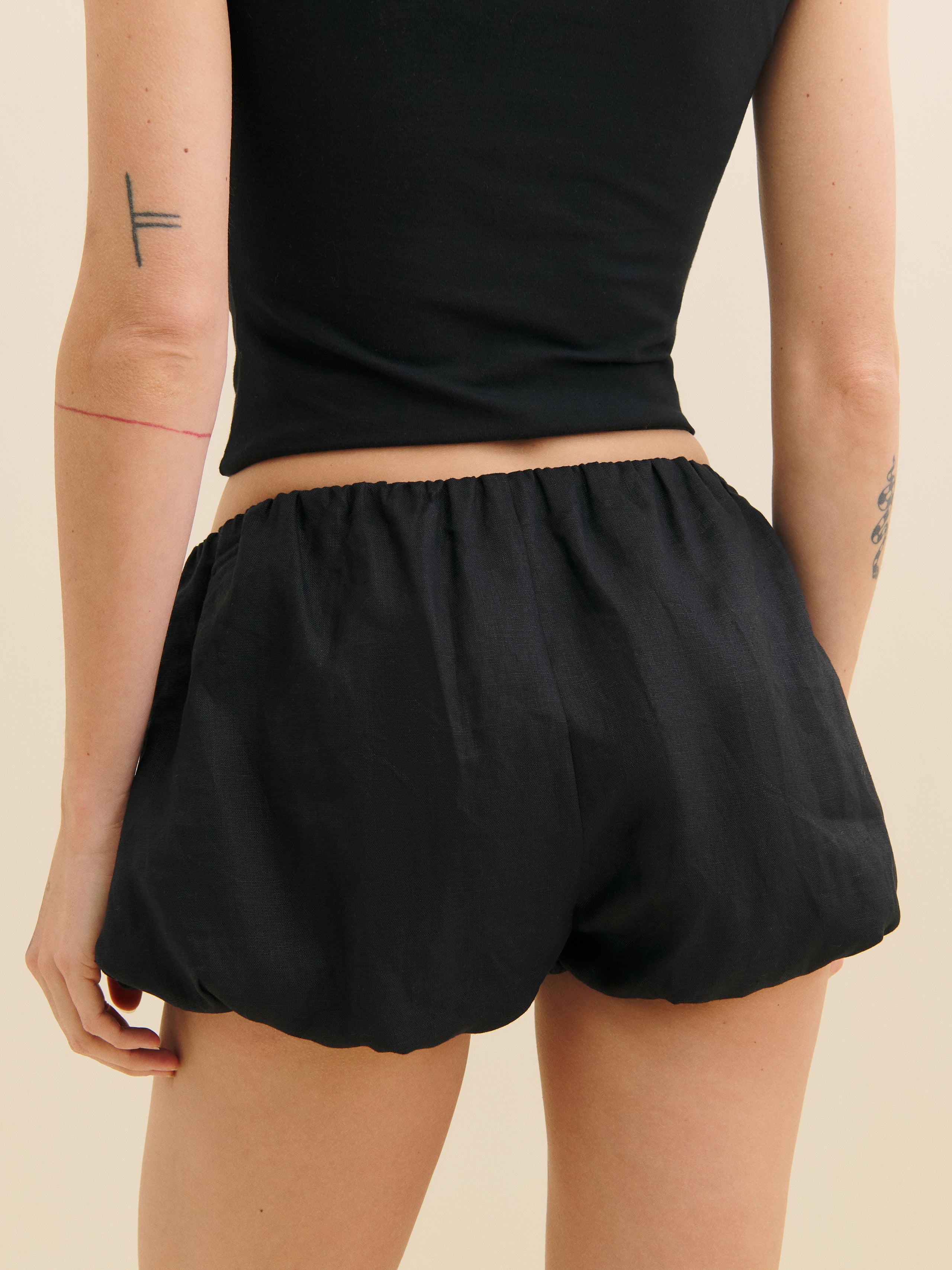 Let those legs out. Shop the Luna Linen Bloomer Short from Reformation, a low-rise bubble short with an elastic waist.