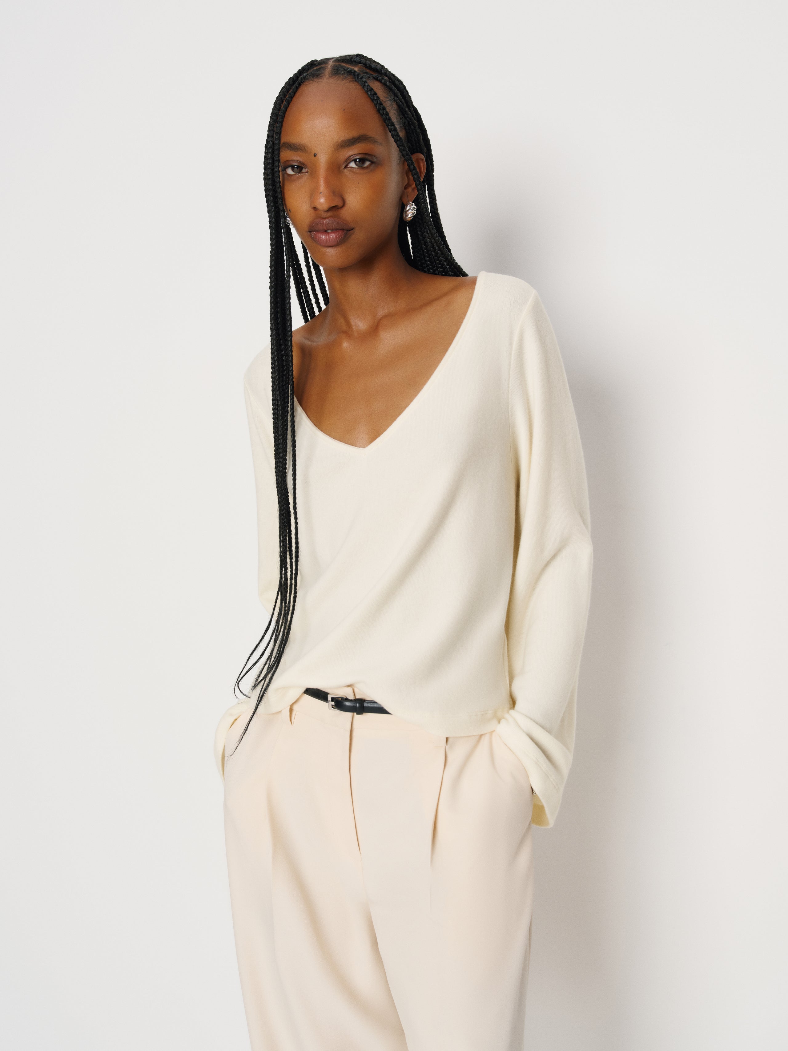 Comfort zone. Shop the Mabel Knit Top from Reformation, a long-sleeved top with a V-neckline and bell...