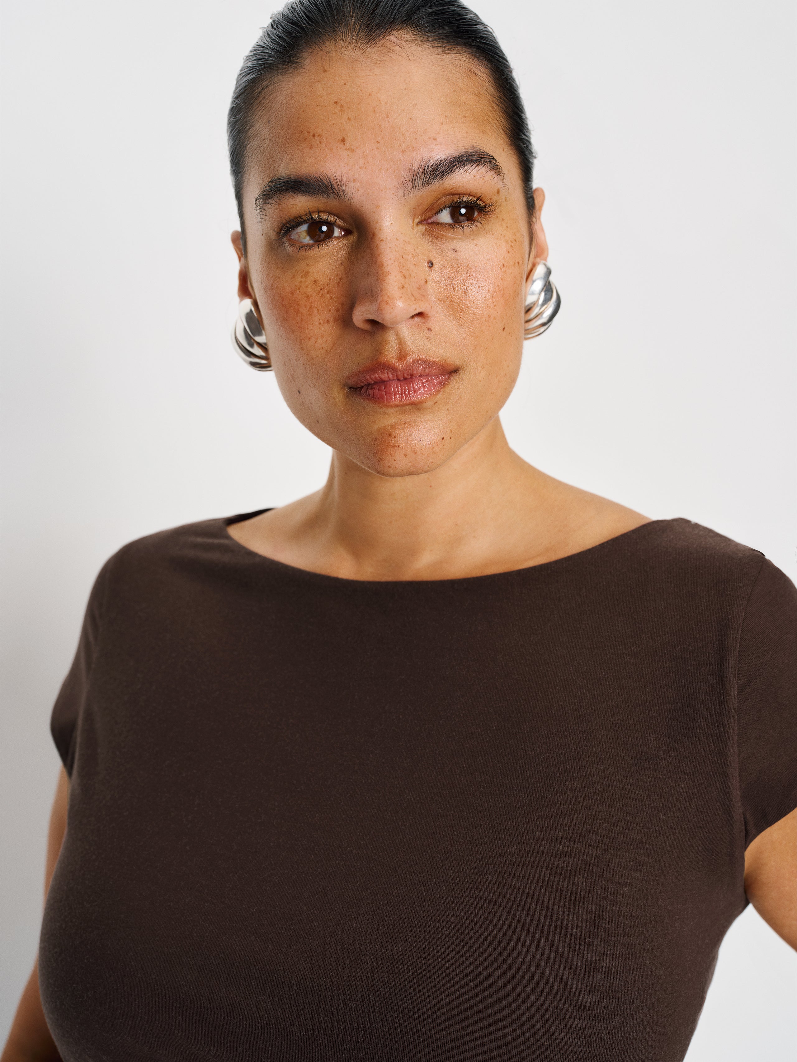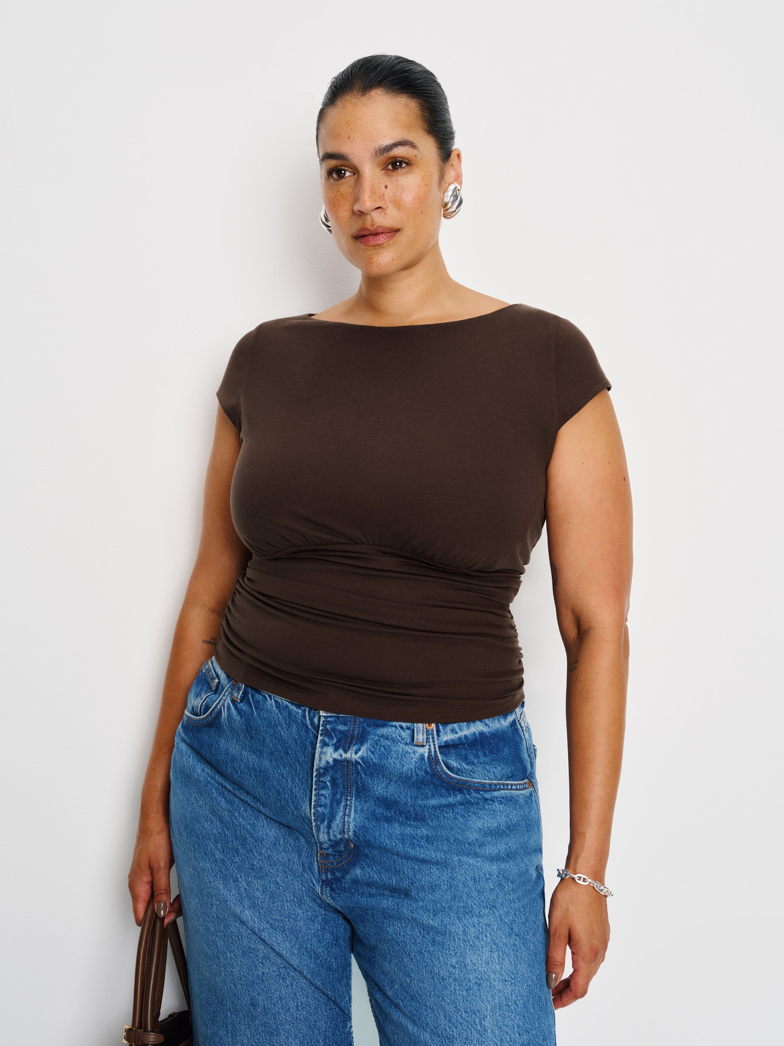 Up top. Shop the Madelyn Knit Top ES from Reformation, a top with capped sleeves, a boat neckline, and seam detailing at the bust.