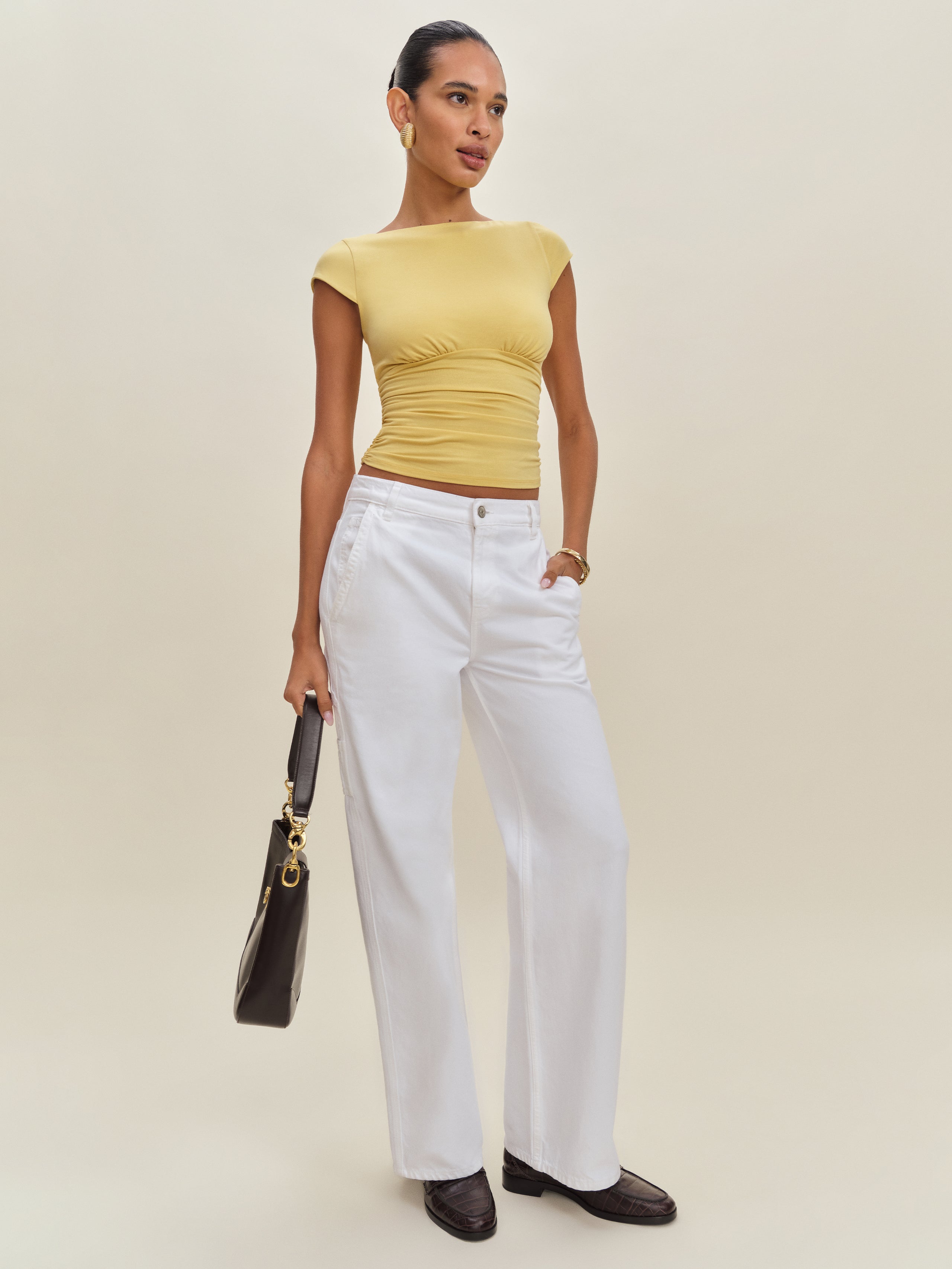 Up top. Shop the Madelyn Knit Top from Reformation, a top with capped sleeves, a boat neckline,...