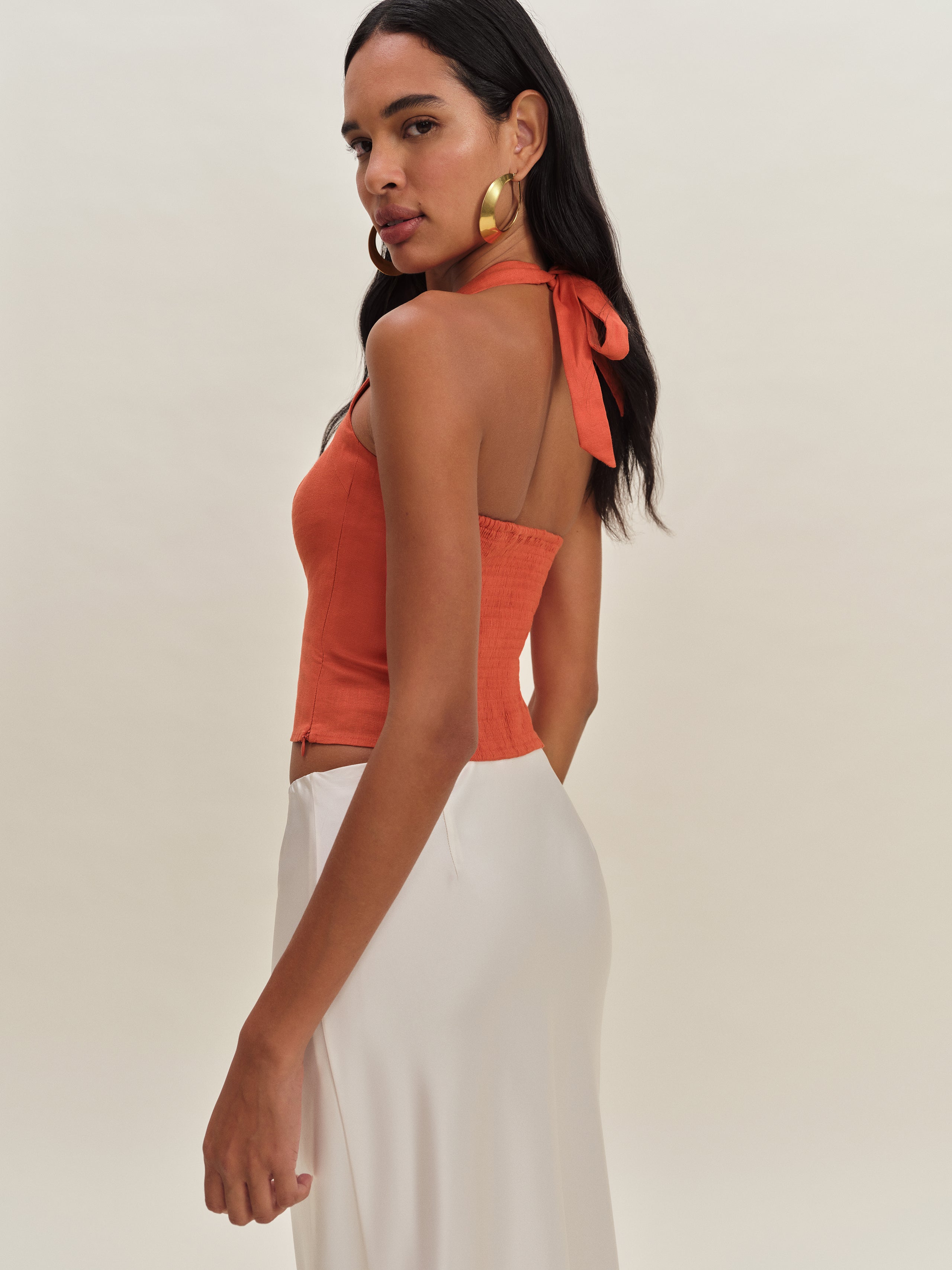 May cause compliments. Shop the Malika Linen Top from Reformation, a top with a halter neckline, smocked...