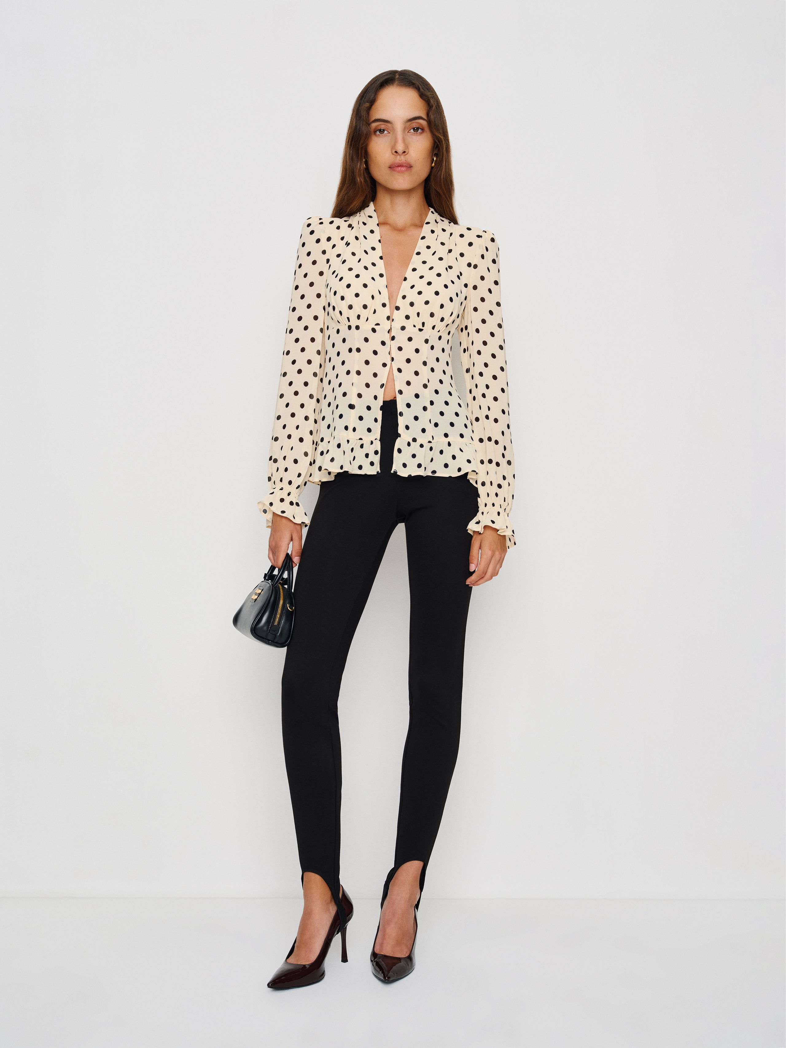 May cause compliments. Shop the Maple Cream Blouse from Reformation, a long-sleeved top with a V-neckline, puff sleeves, and clasp detailing in the front.