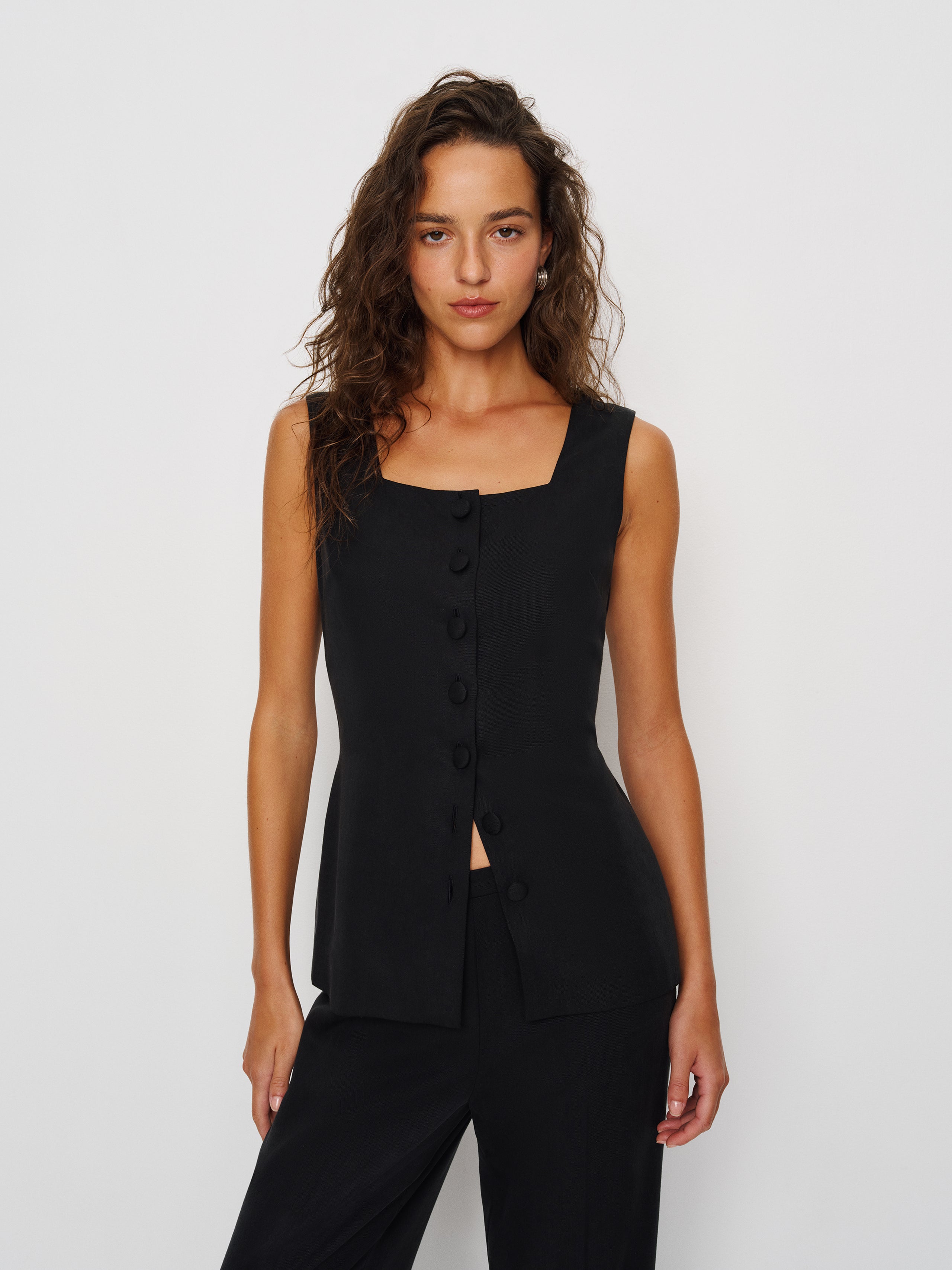 Who, me. Shop the Maren Two Piece from Reformation, a sleeveless top with a functional button front...