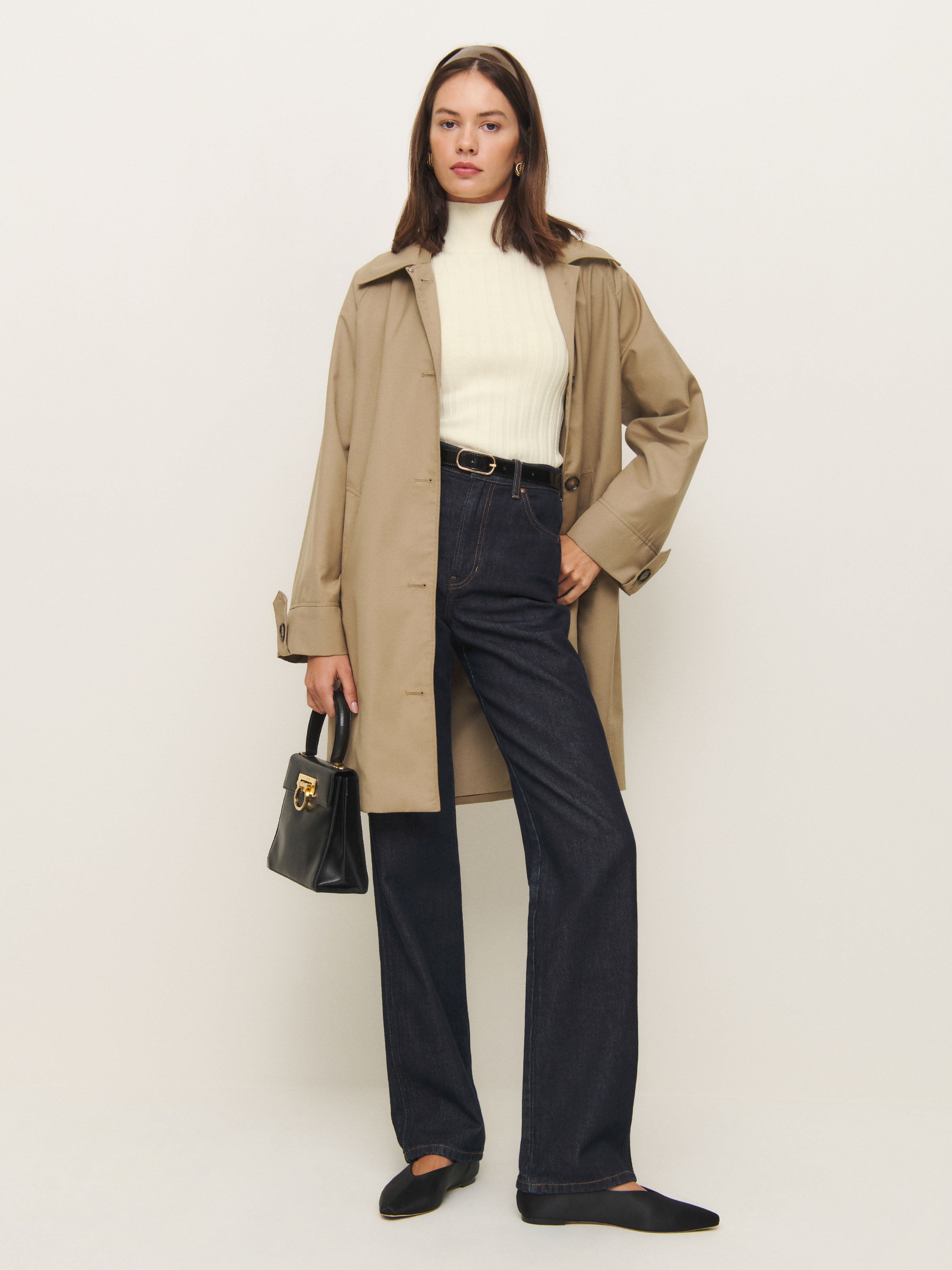 Layer up. Shop the Margoax Regenerative Merino Mock Neck Sweater from Reformation, a short-sleeve sweater with a mock neckline and ribbing throughout.