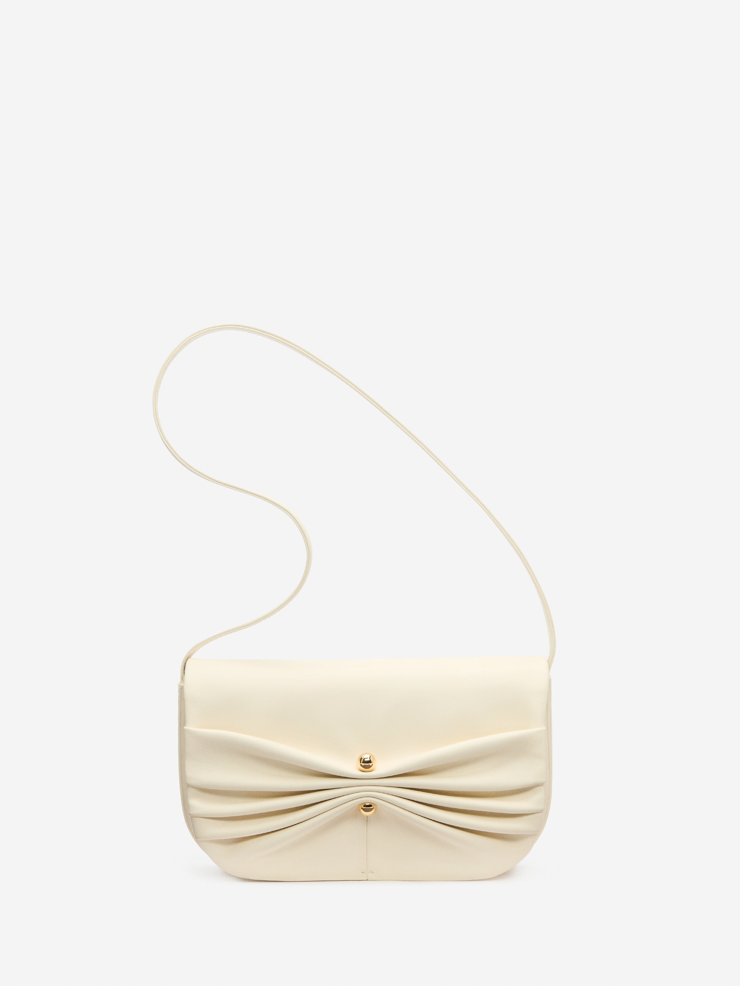 Hold me. Shop the Maria Shoulder Bag from Reformation, a small shoulder bag with a long shoulder strap and ruched bow detailing.