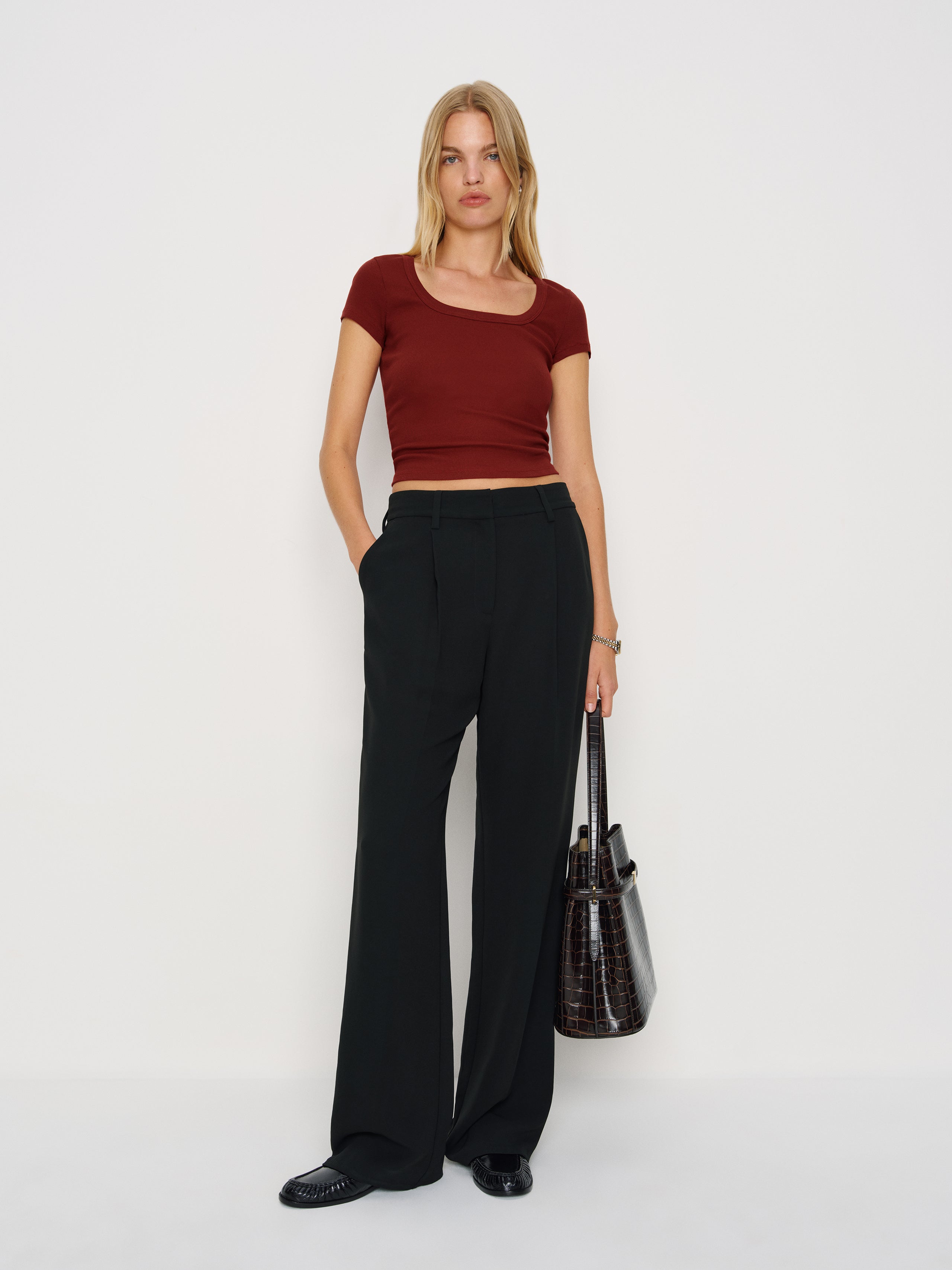 No nonsense. Shop the Marnie Tee from Reformation, a short-sleeved top with a scoop neckline. Wear it,...