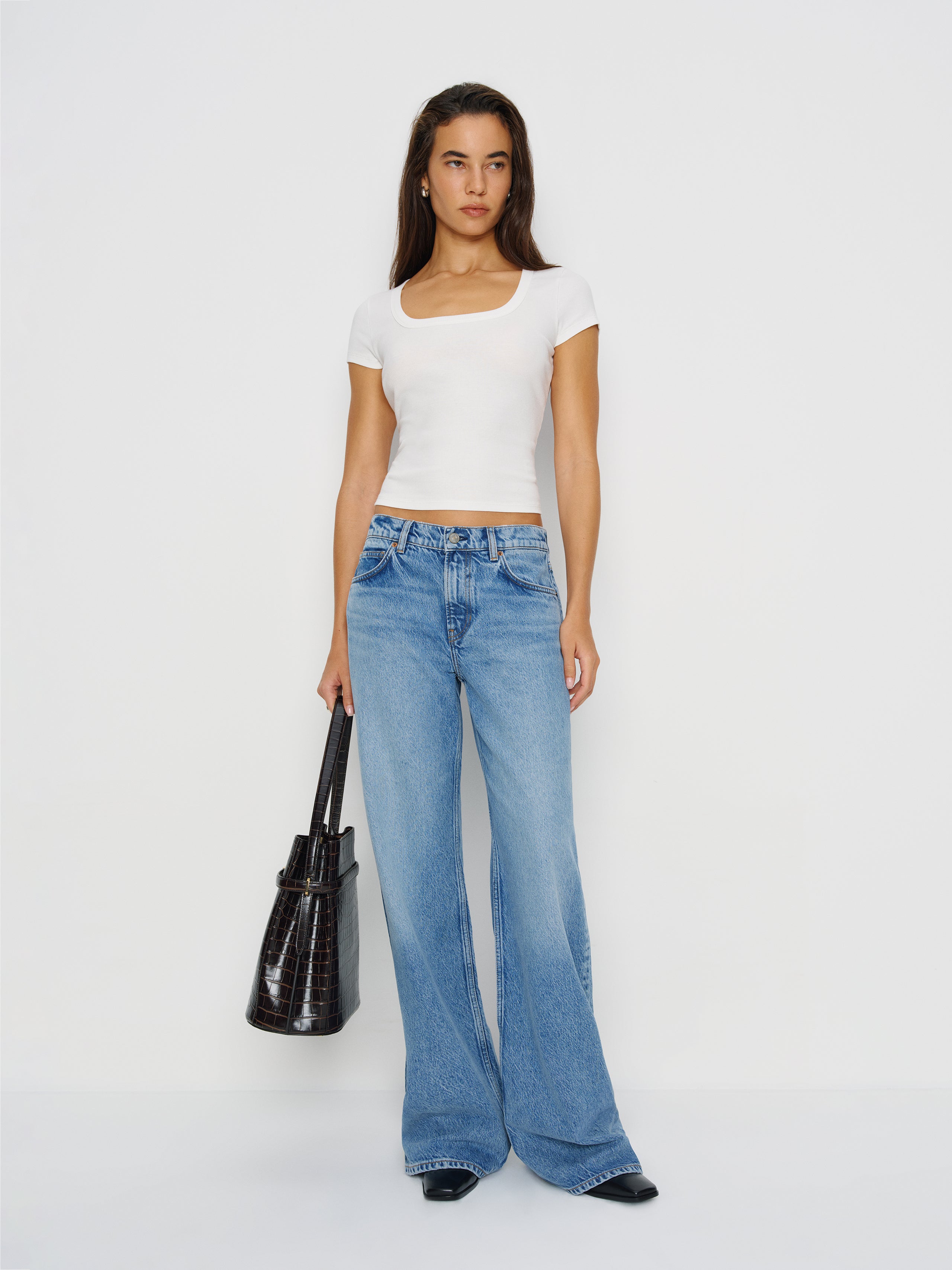 No nonsense. Shop the Marnie Tee from Reformation, a short-sleeved top with a scoop neckline. Wear it,...