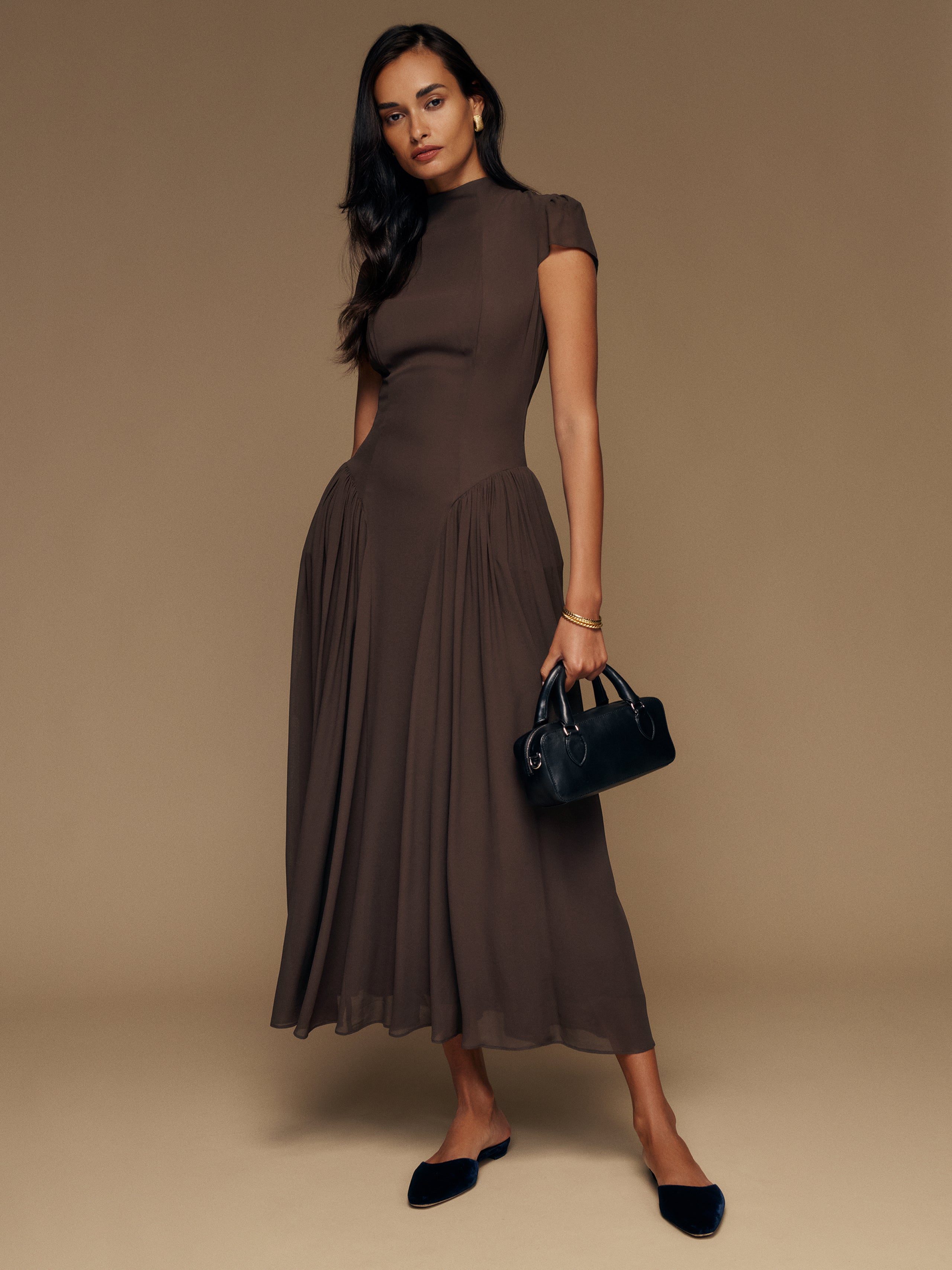 Romance for one. Shop the Maven Dress from Reformation, a cap sleeve maxi dress with a mock...