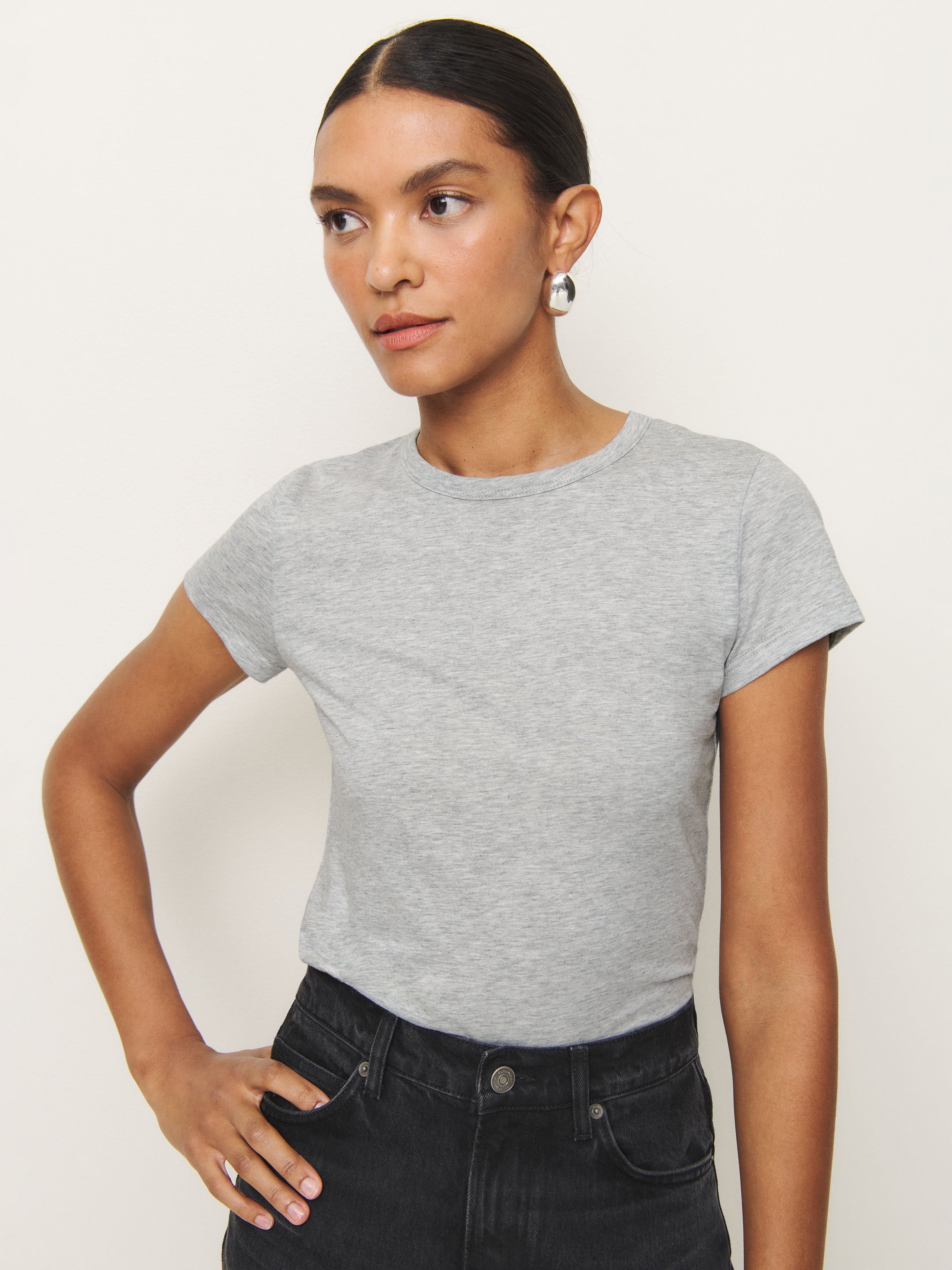 Shop the Max Slim Tee from Reformation, a short-sleeve tee with a crew neckline.
