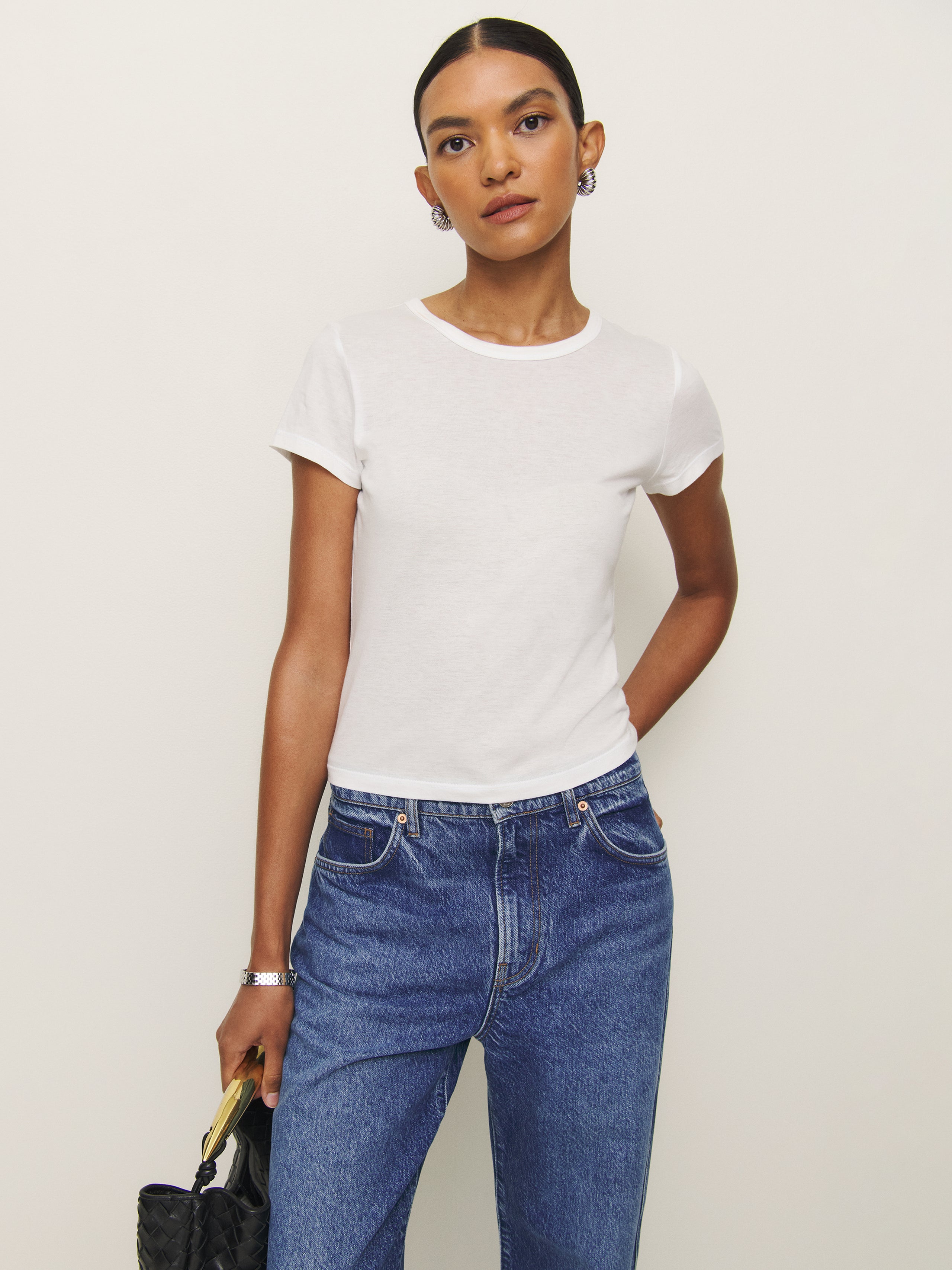 Shop the Max Slim Tee from Reformation, a short-sleeve tee with a crew neckline.
