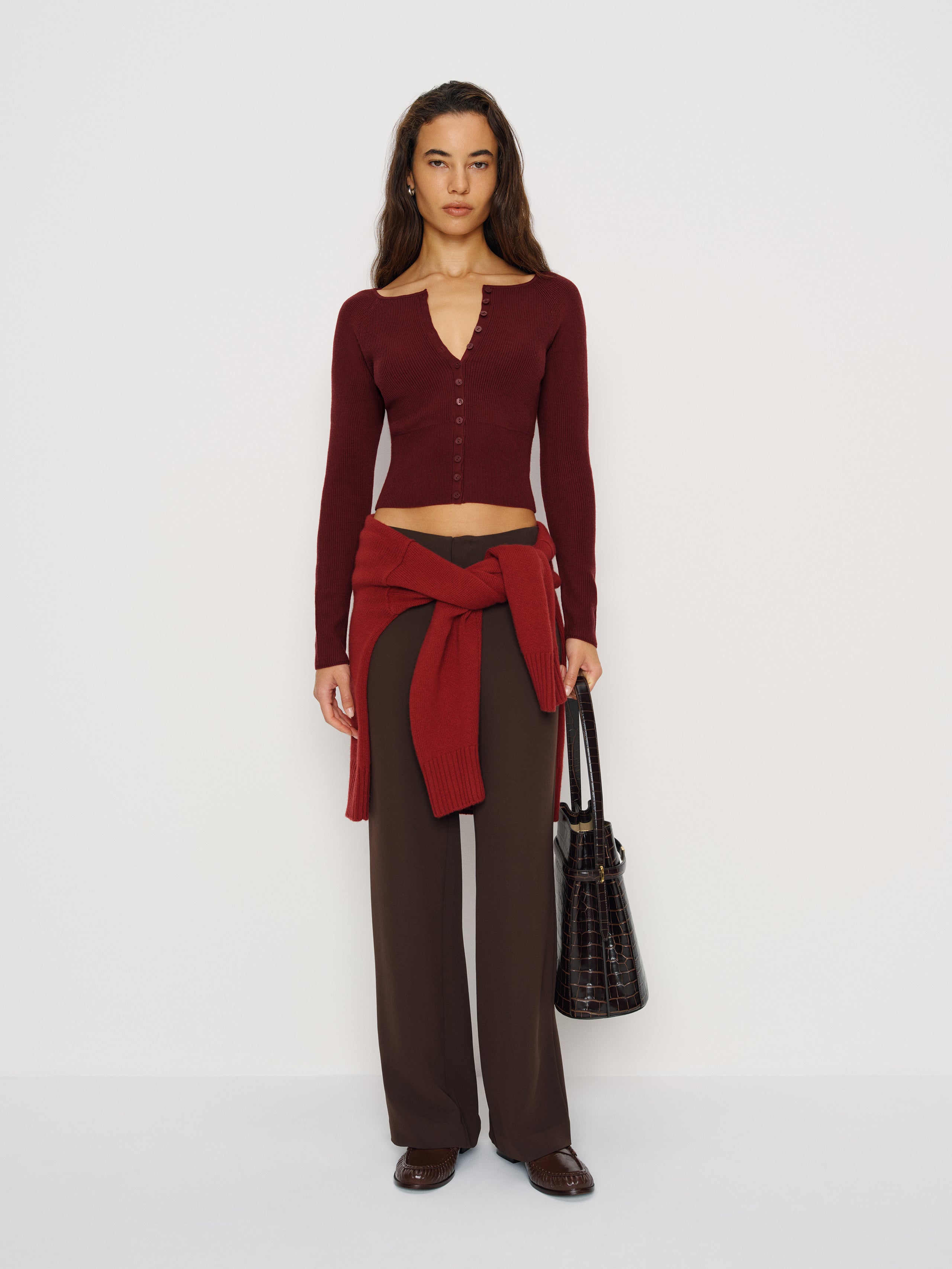 Layer up. Shop the Meadow Regenerative Merino Cardigan from Reformation, a cardigan with ribbing throughout. A styling...