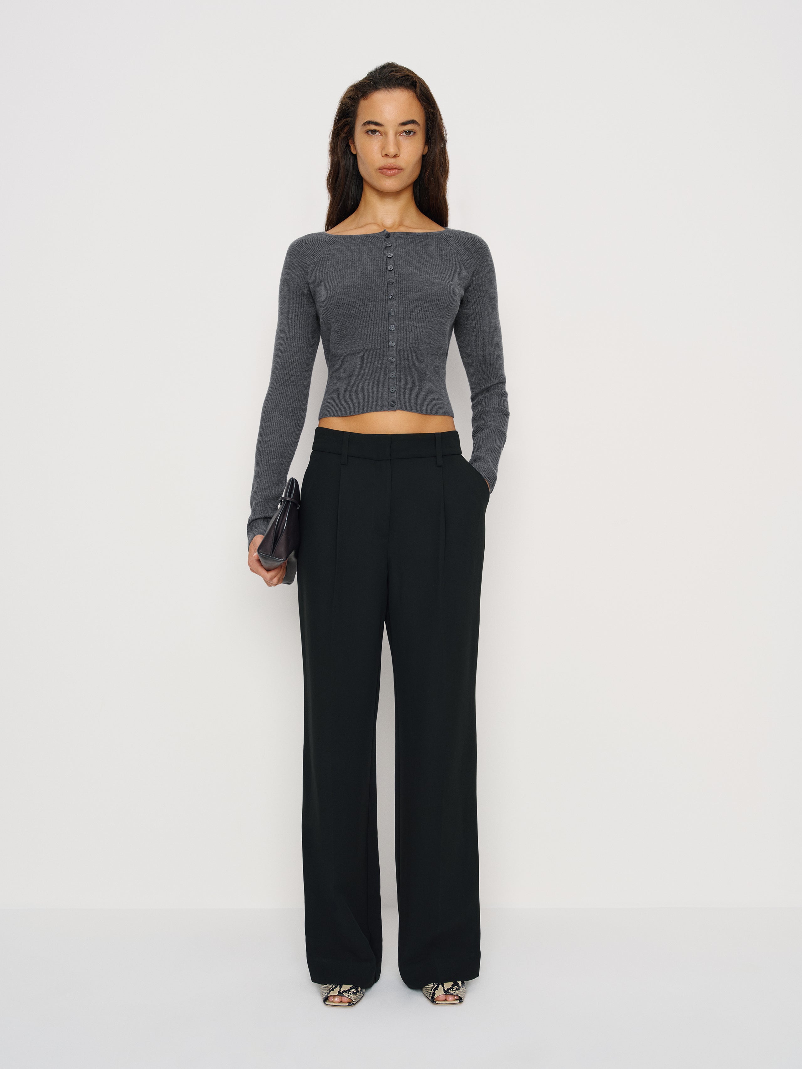 Layer up. Shop the Meadow Regenerative Merino Cardigan from Reformation, a cardigan with ribbing throughout. A styling...