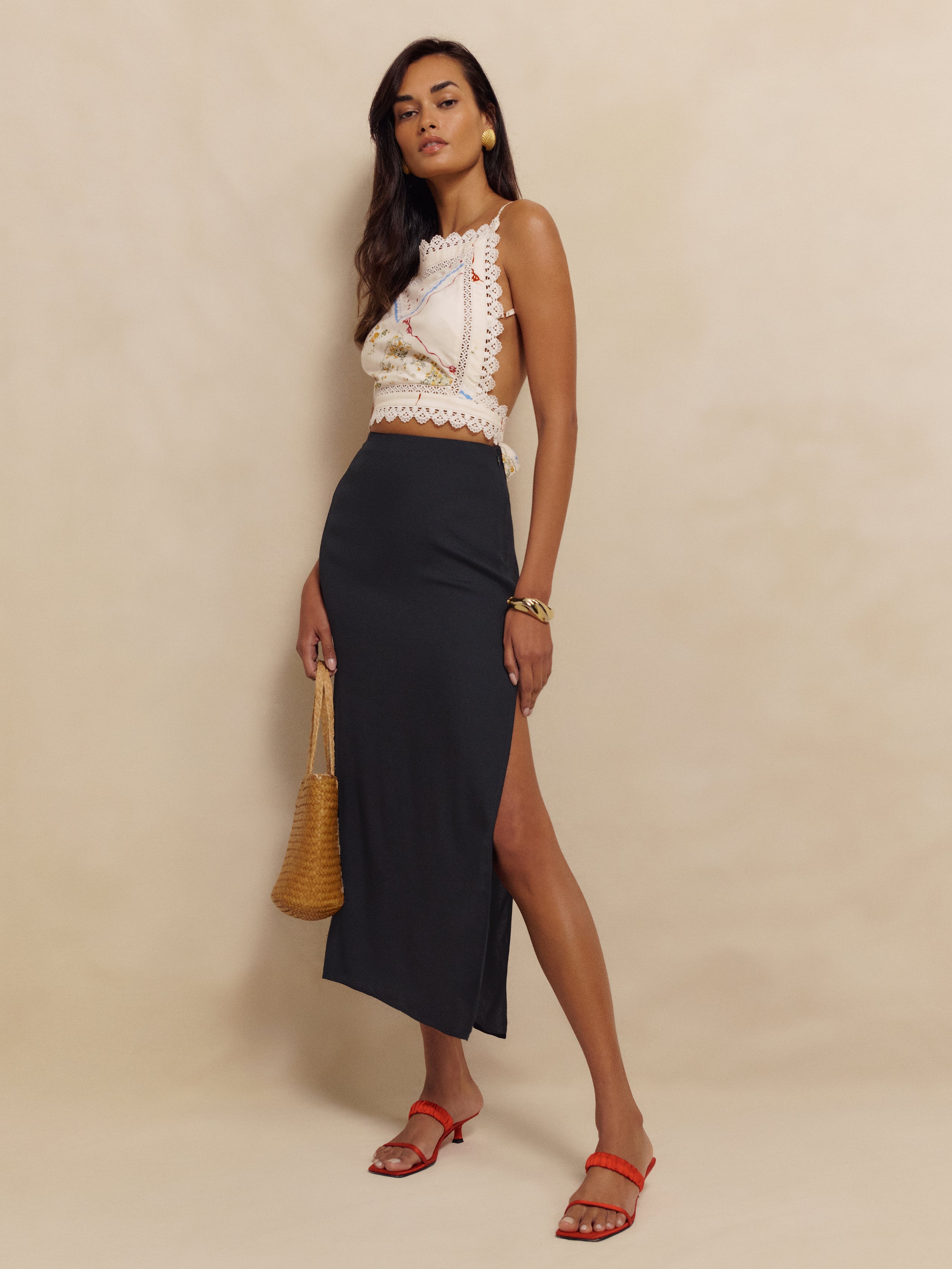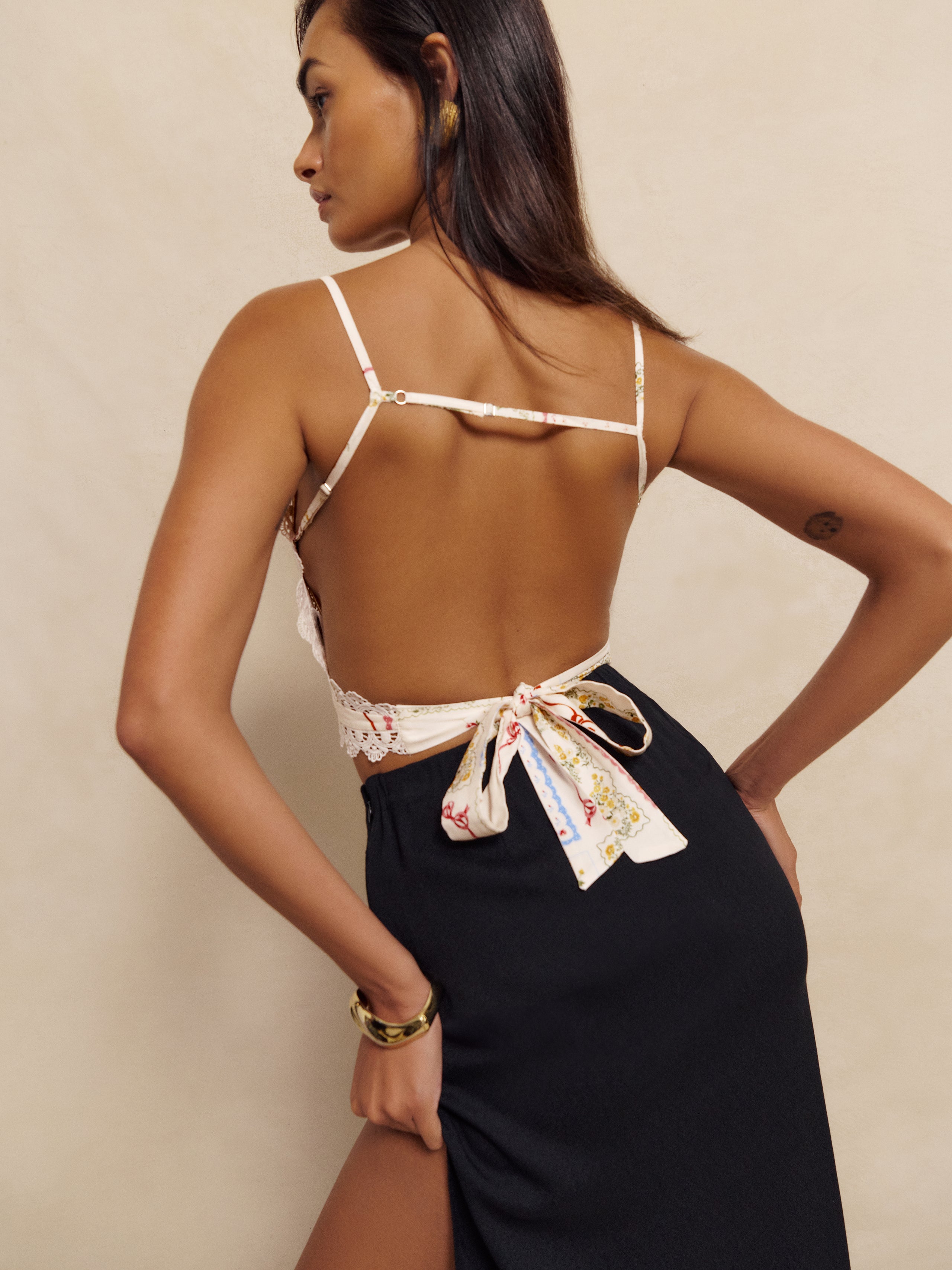 Up top. Shop the Meadow Top from Reformation, a sleeveless top with a high neckline and open...