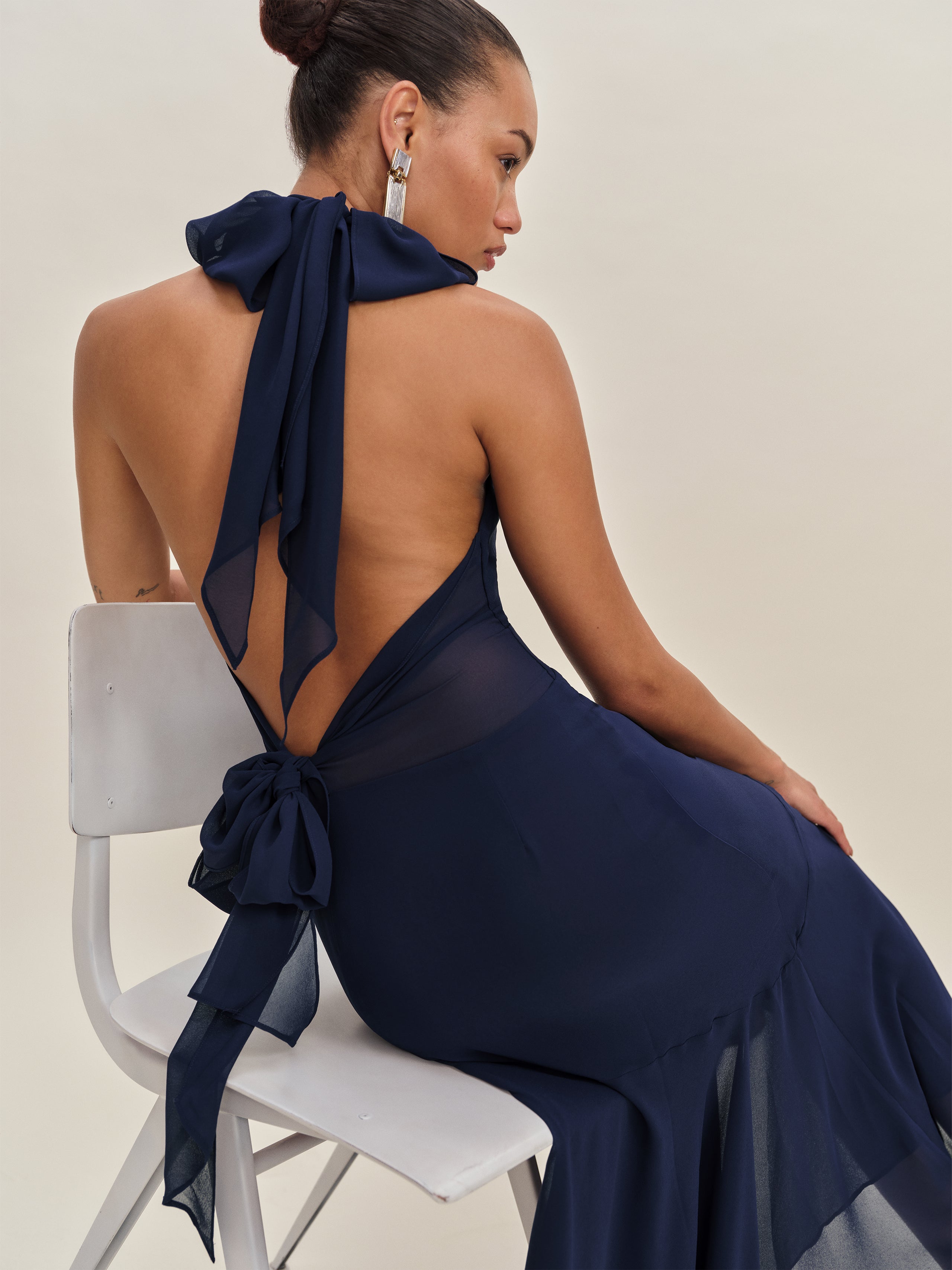 Romance alert. Shop the Mela Dress from Reformation, a sleeveless maxi dress with an adjustable tie neckline,...