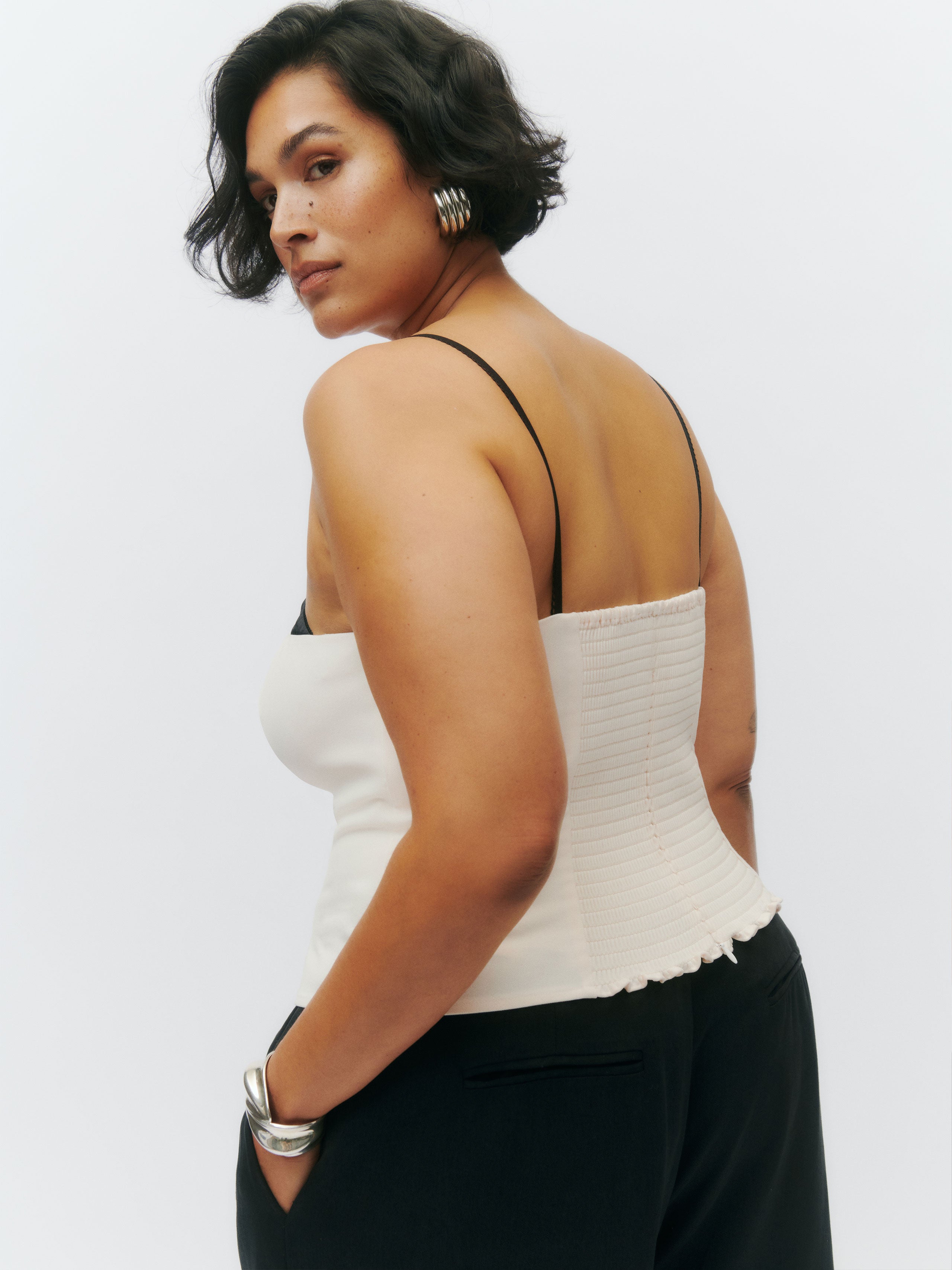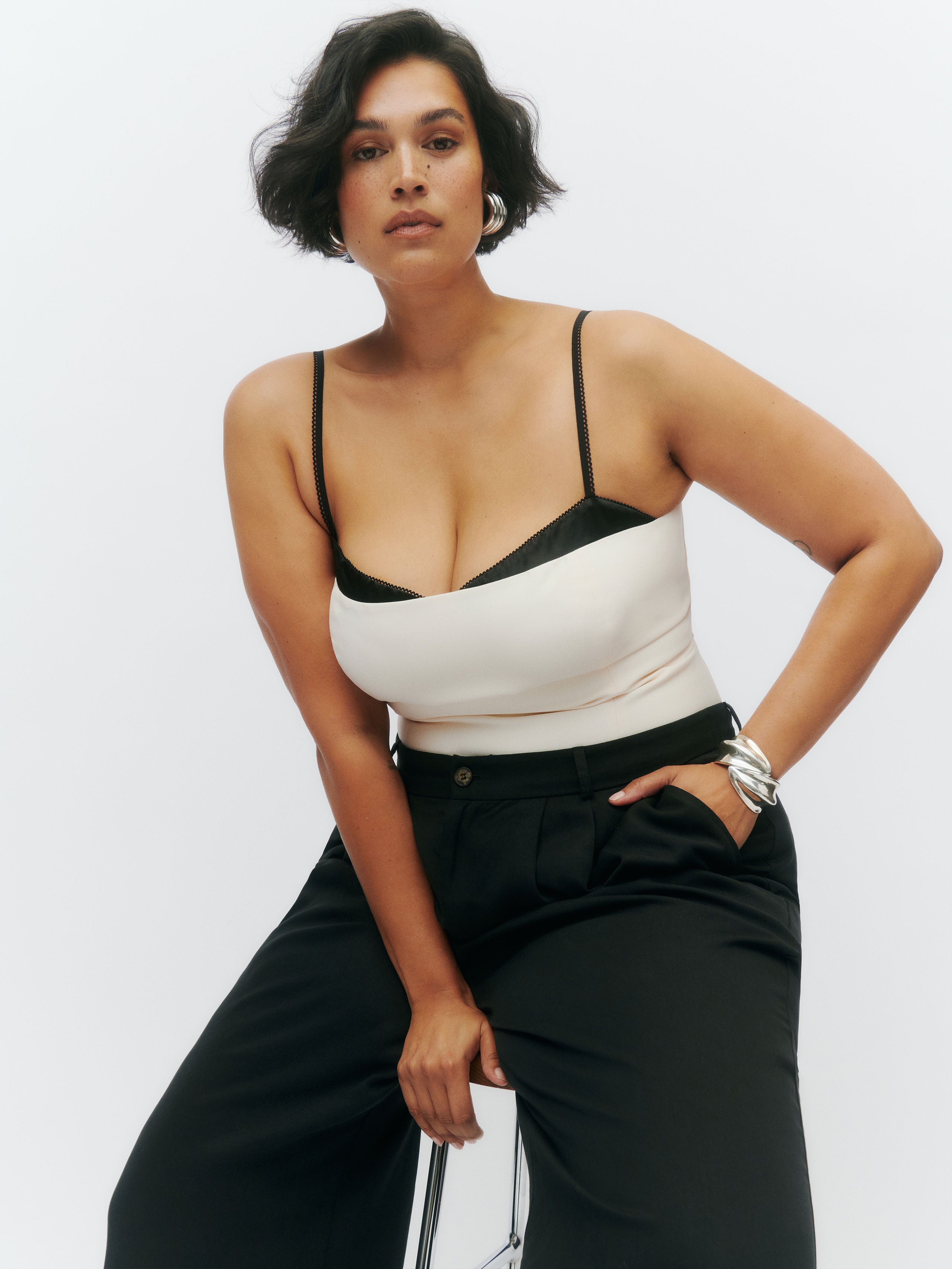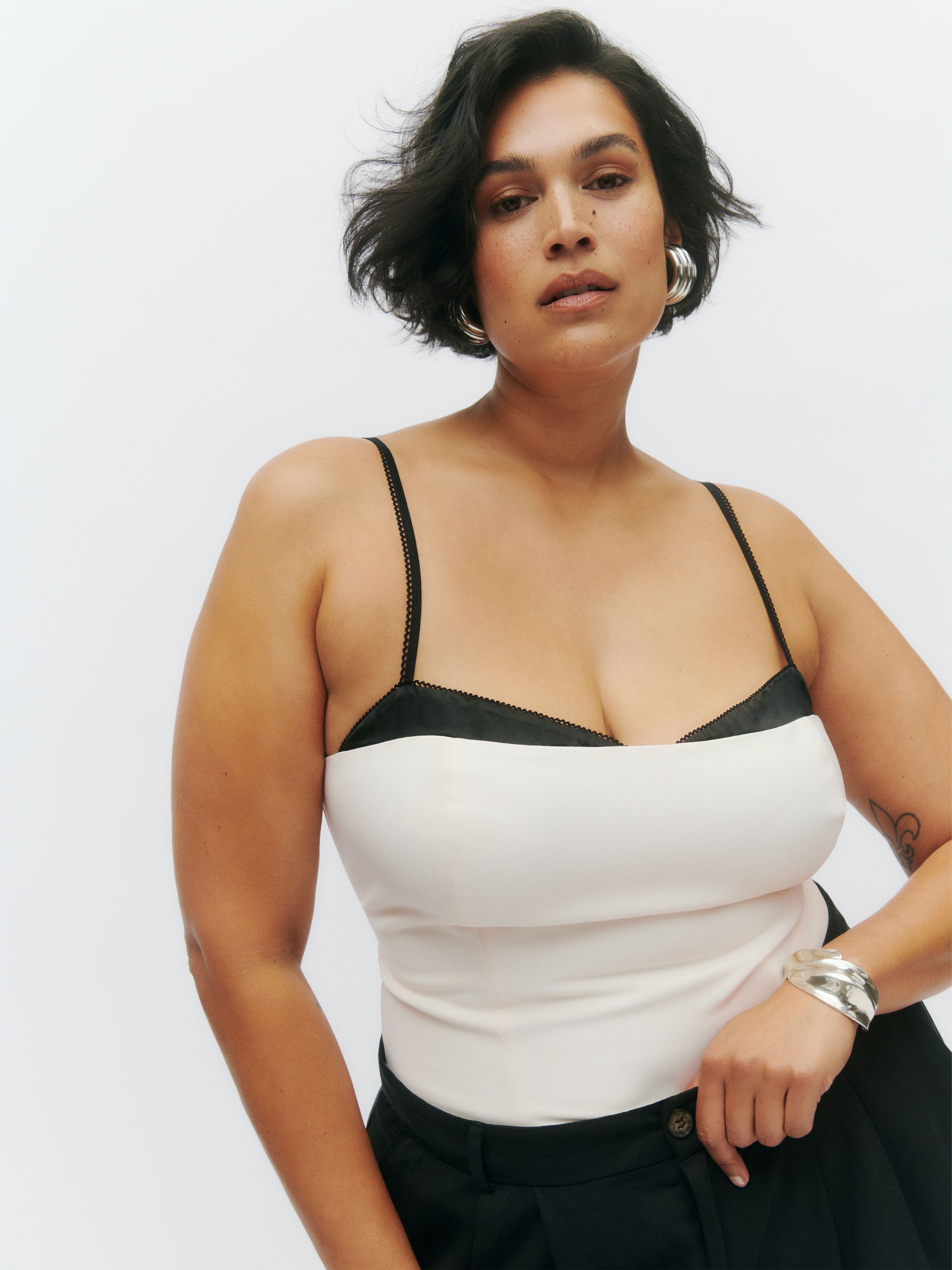 You make it look easy. Shop the Melanie Top ES from Reformation, a sleeveless top with contrast stitching and a sweetheart neckline.