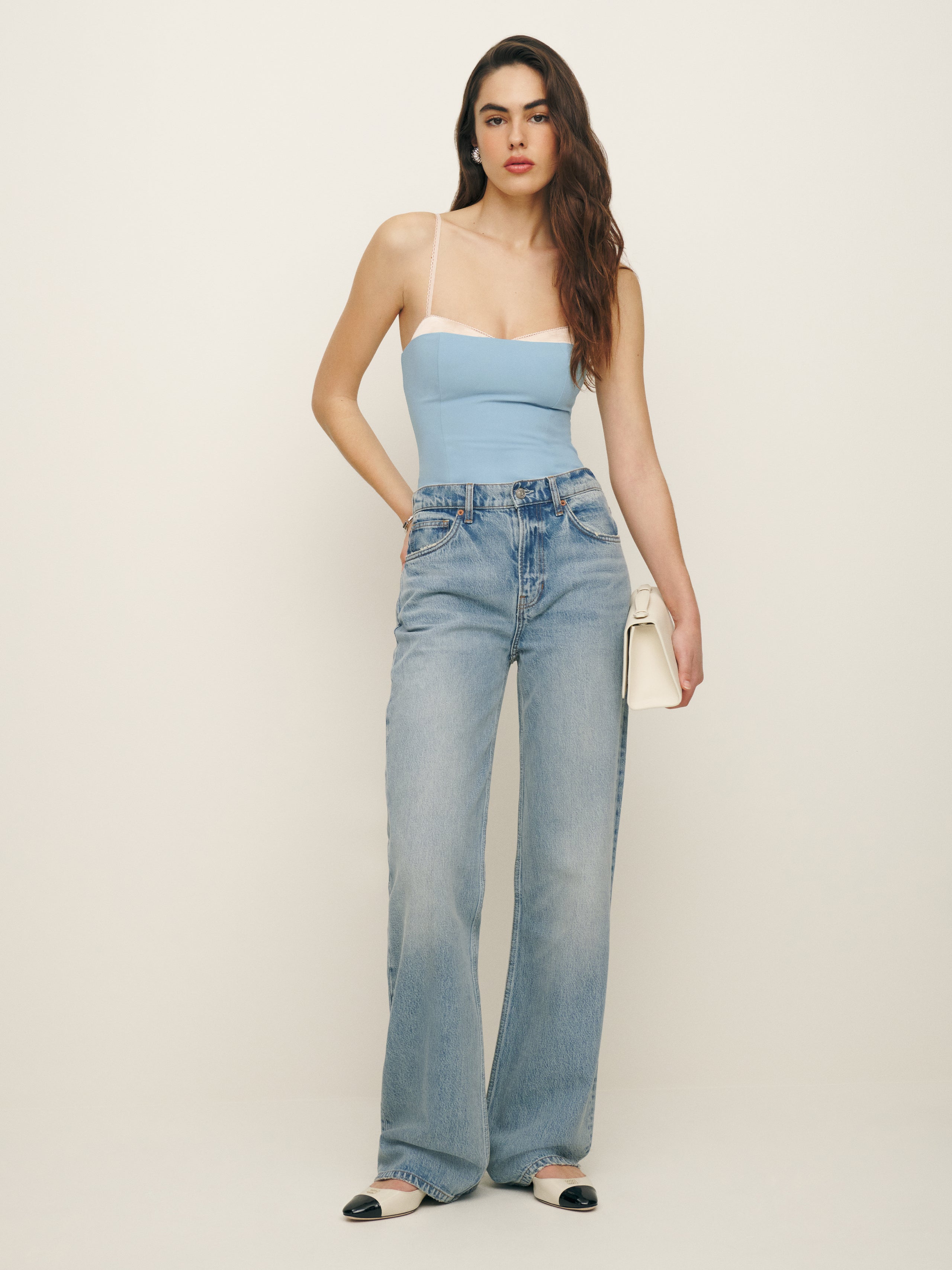 You make it look easy Shop the Melanie Top from Reformation, a sleeveless top with contrast stitching and a sweetheart neckline.
