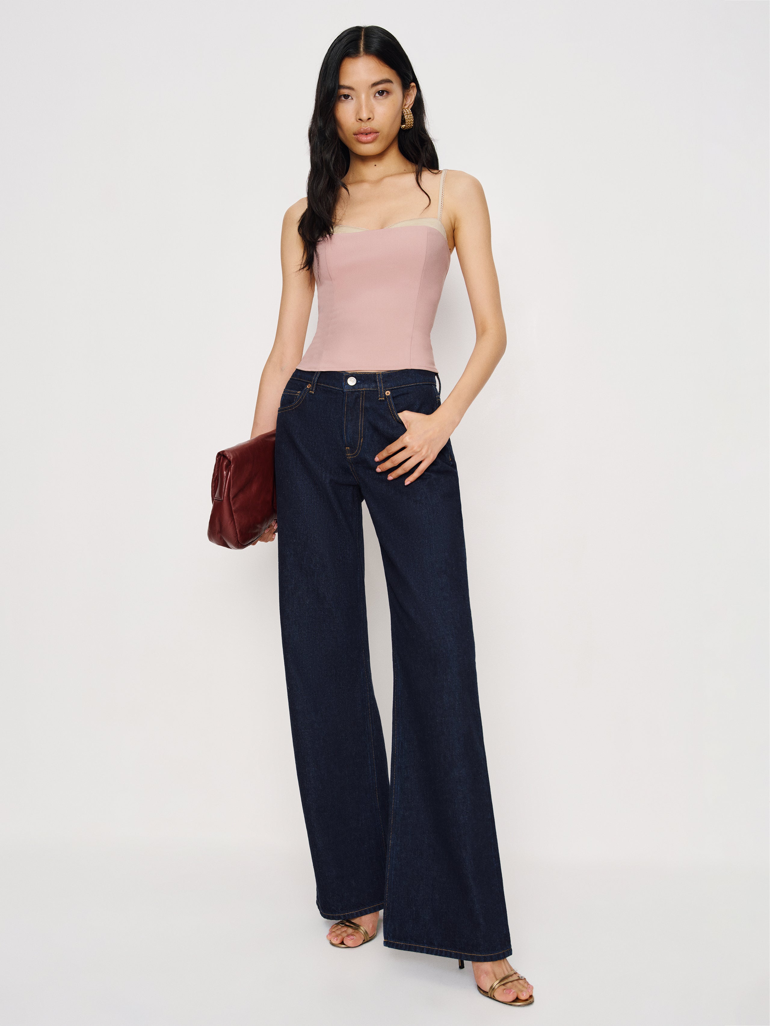 You make it look easy Shop the Melanie Top from Reformation, a sleeveless top with contrast stitching...