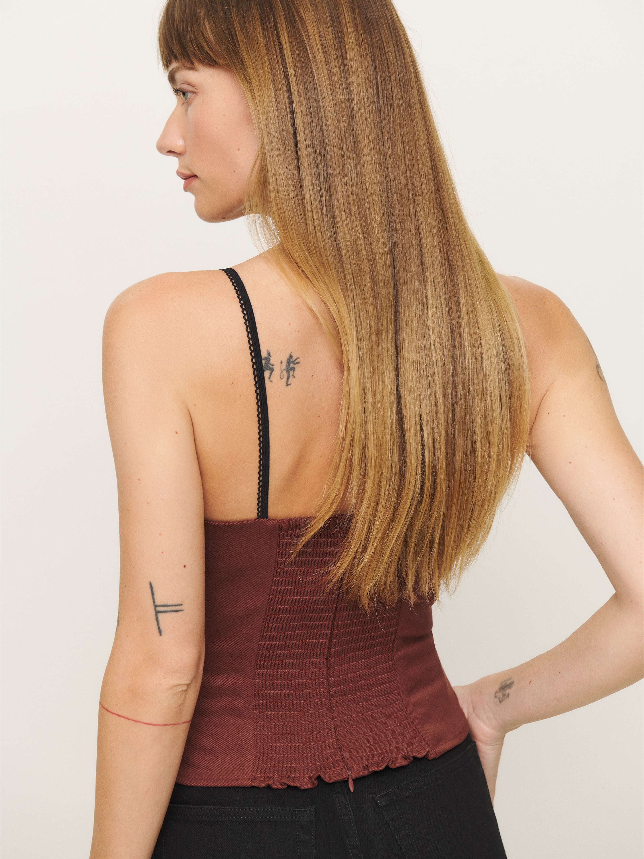 You make it look easy Shop the Melanie Top from Reformation, a sleeveless top with contrast stitching...