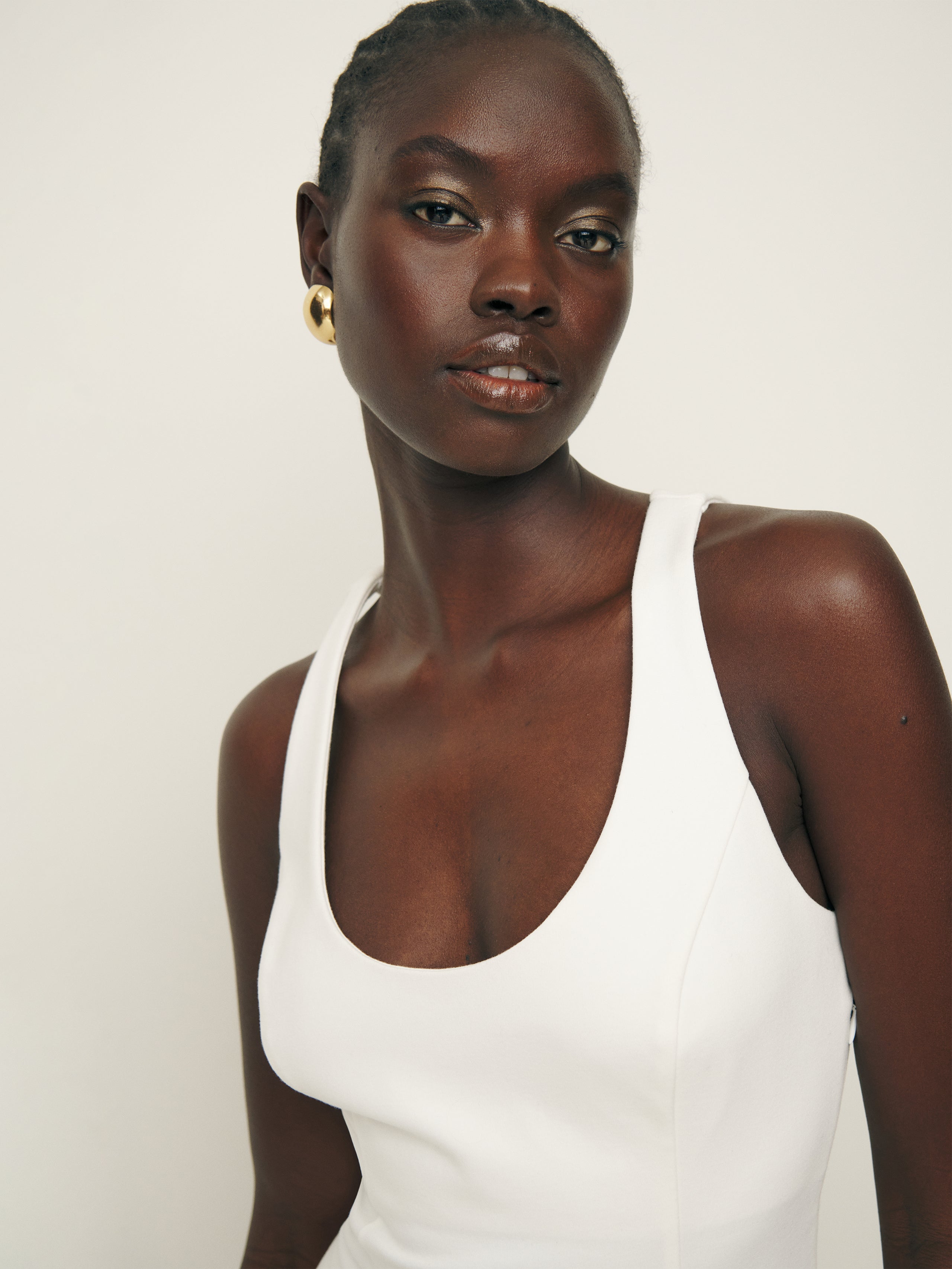 How classic. Shop the Mikol Knit Dress from Reformation, a midi length dress with a scoop neckline and full skirt.