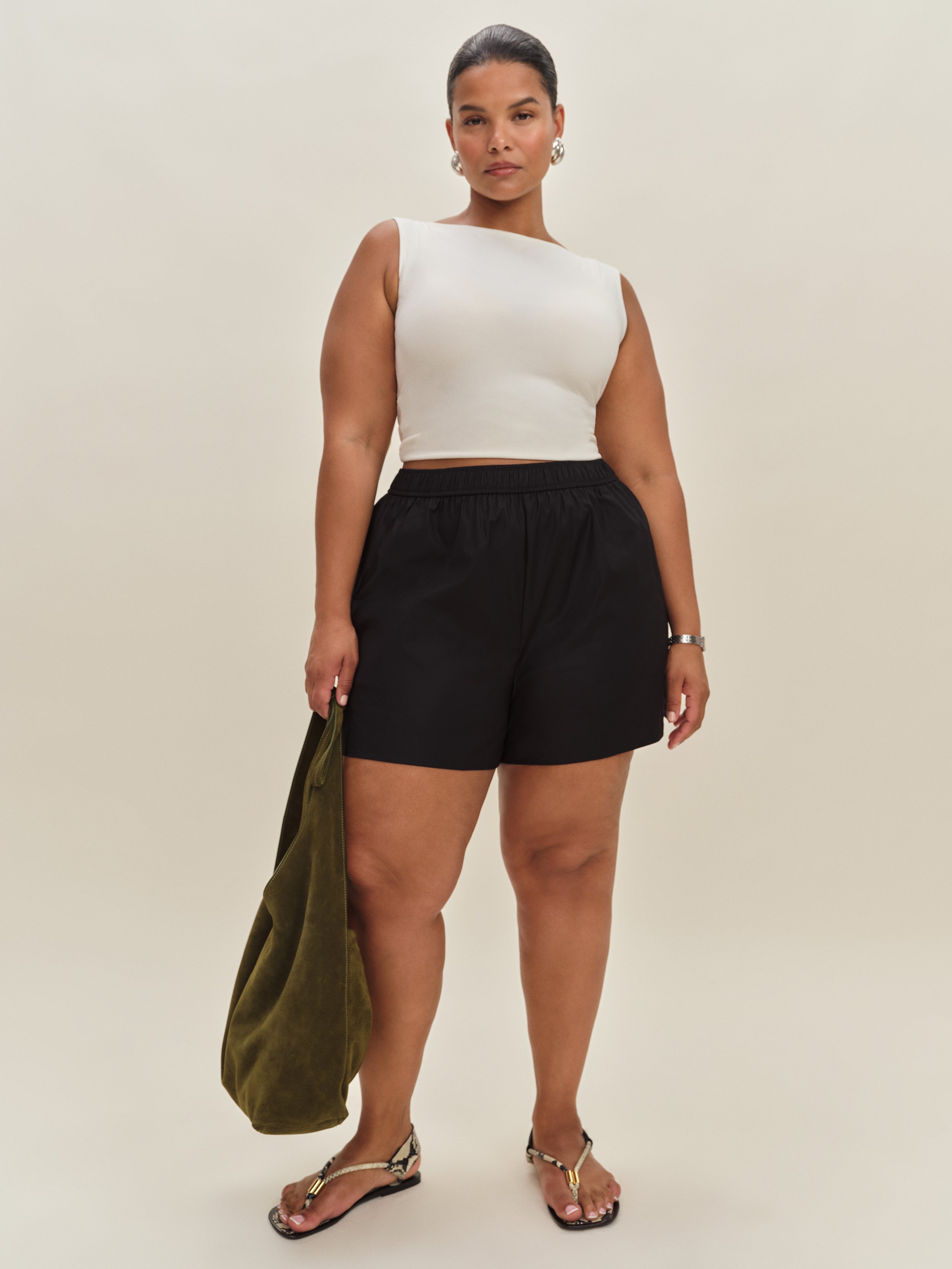 Let those legs out. Shop the Miles Short ES from Reformation, a high rise short with an elastic waistband and side pockets.