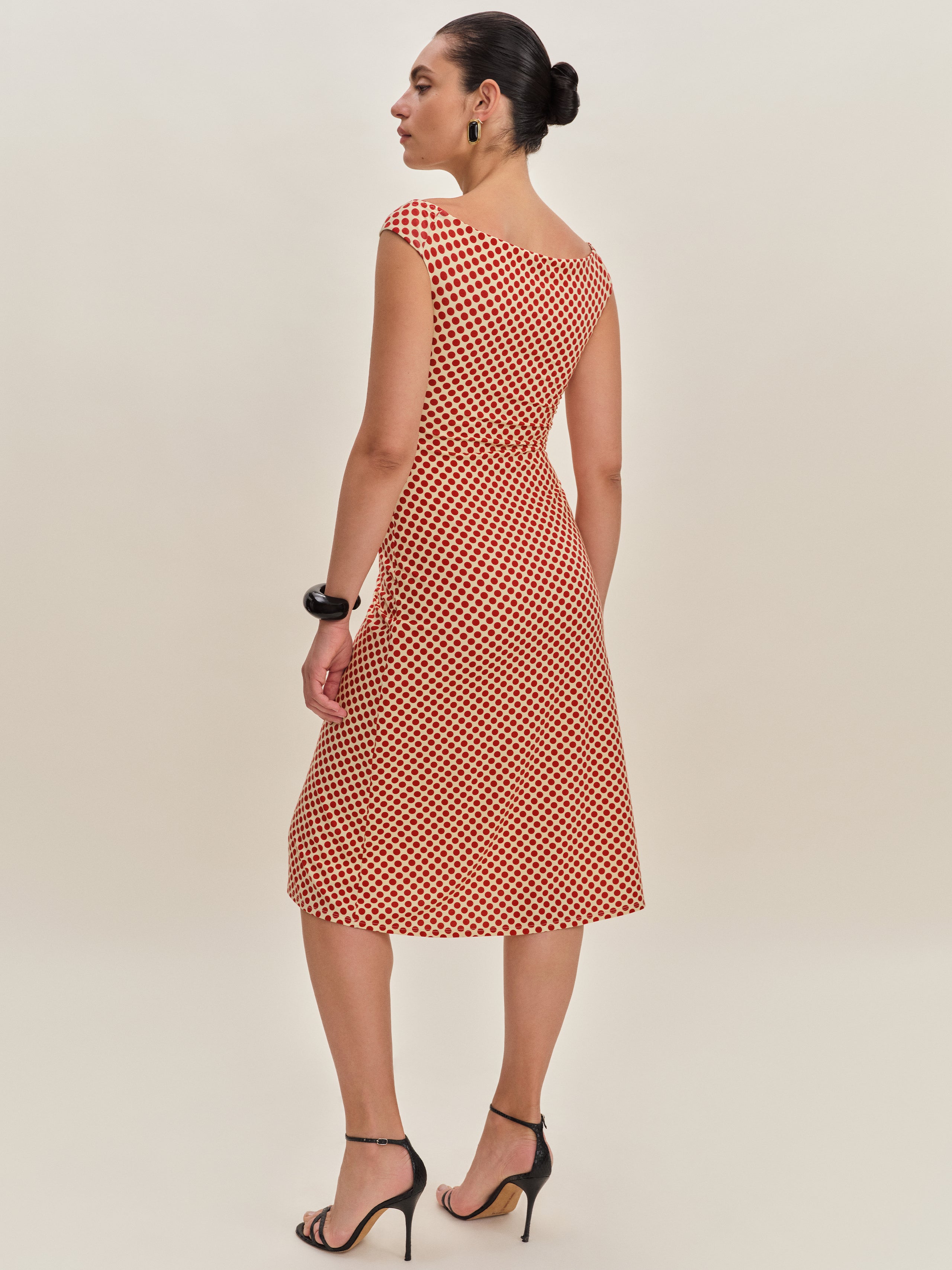 How classic. Shop the Milo Knit Dress from Reformation, an off-the-shoulder midi dress with ruching at the...