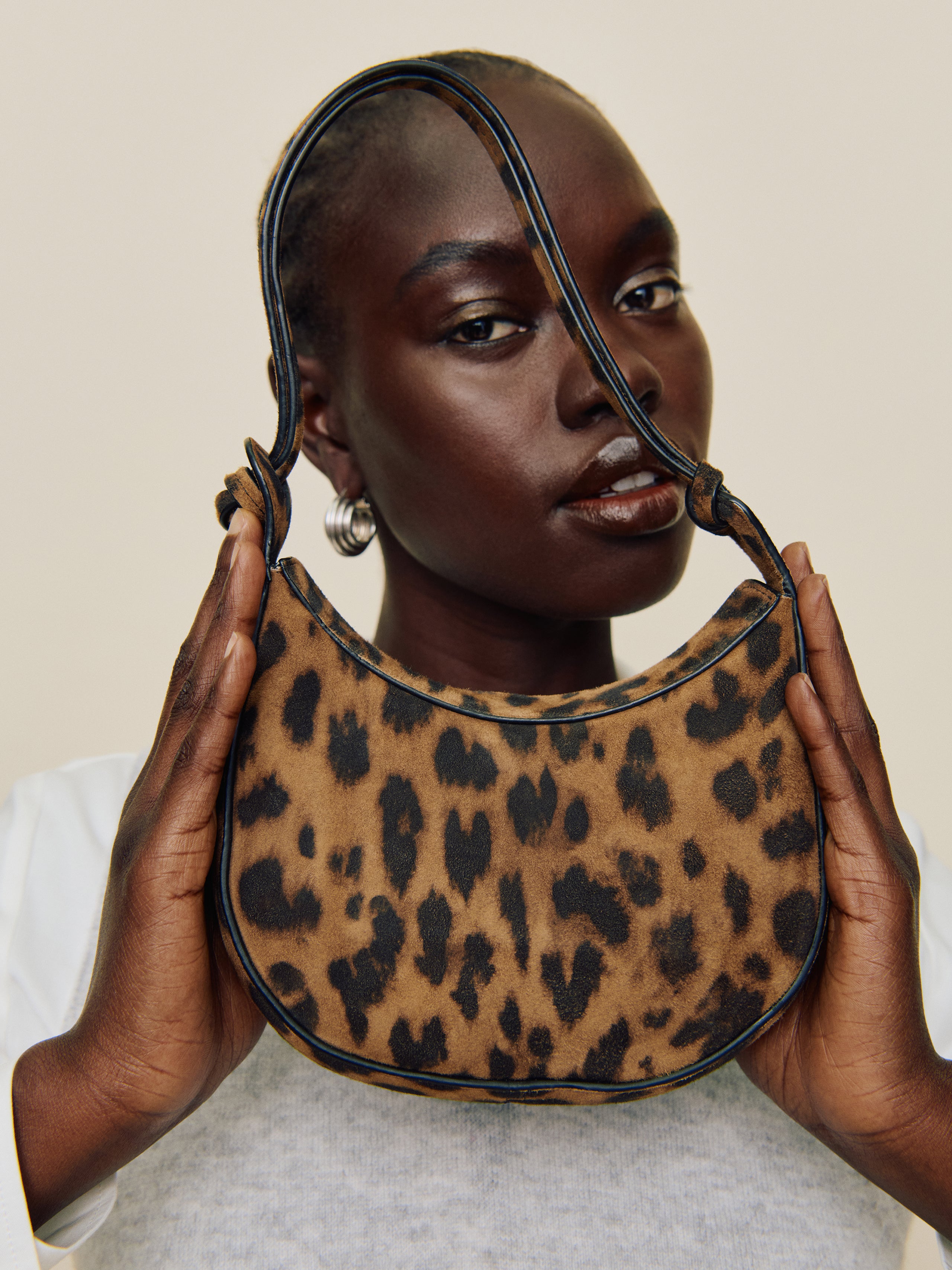 Hold me. Shop the Mini Rosetta Shoulder Bag from Reformation, a crescent shaped leather shoulder bag with...