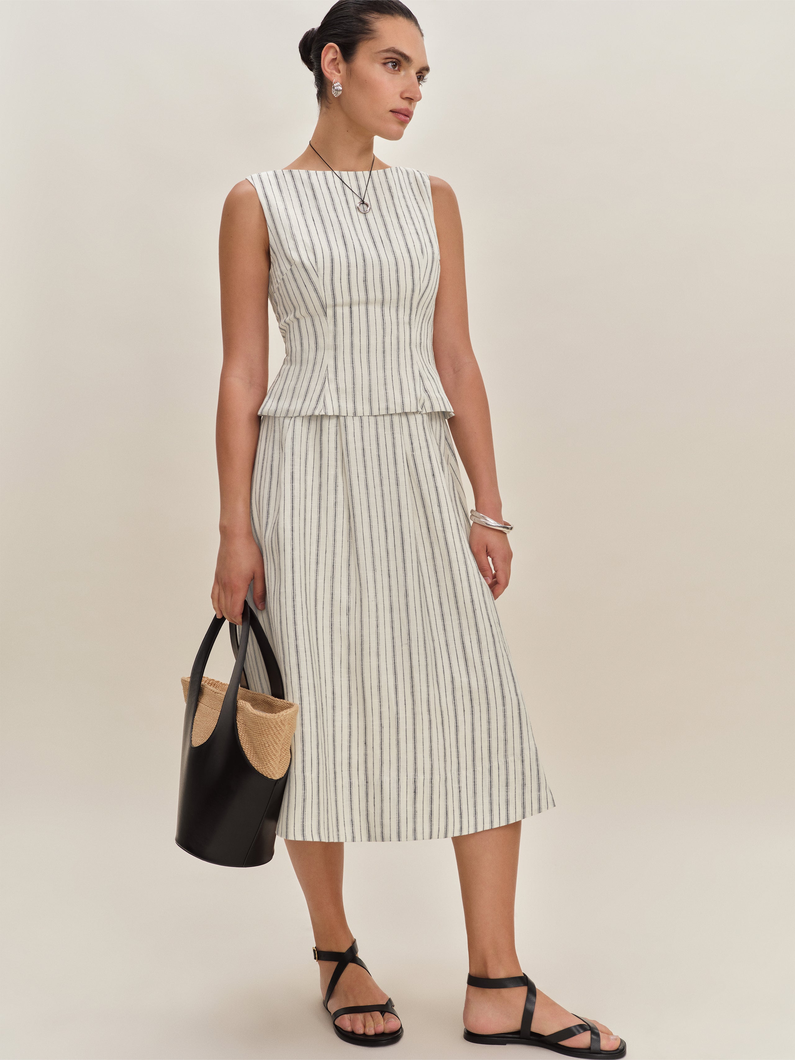 No nonsense. Shop the Moya Linen Two Piece from Reformation, a sleeveless top with a high neckline...