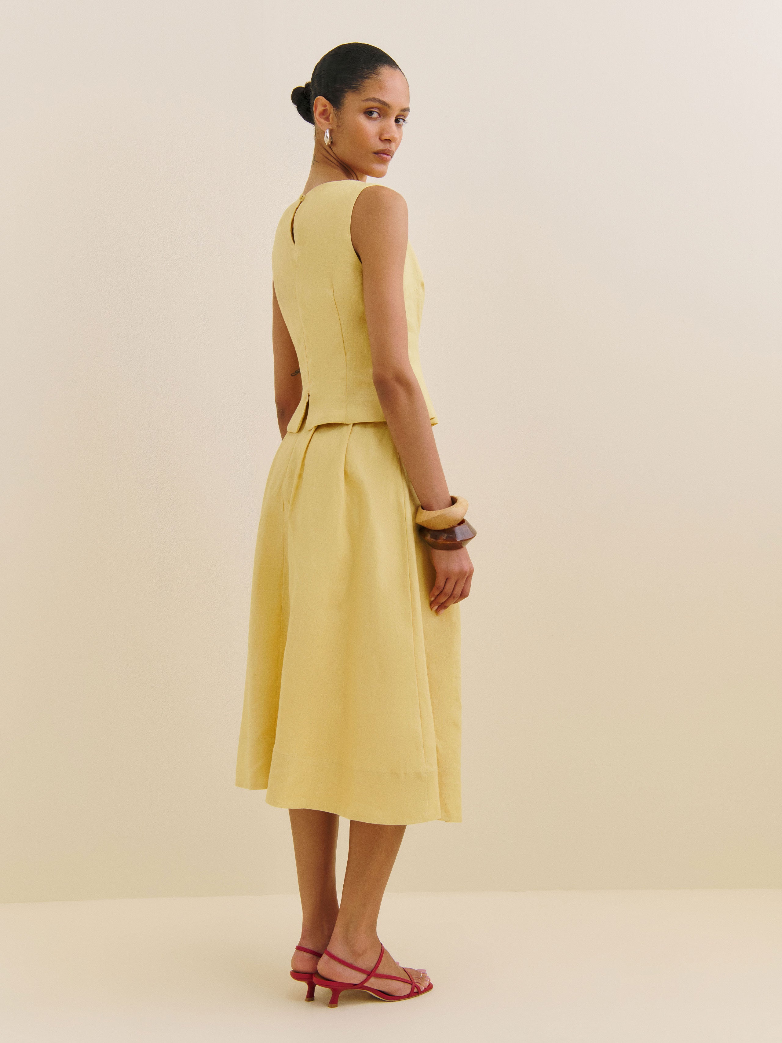 No nonsense. Shop the Moya Linen Two Piece from Reformation, a sleeveless top with a high neckline...