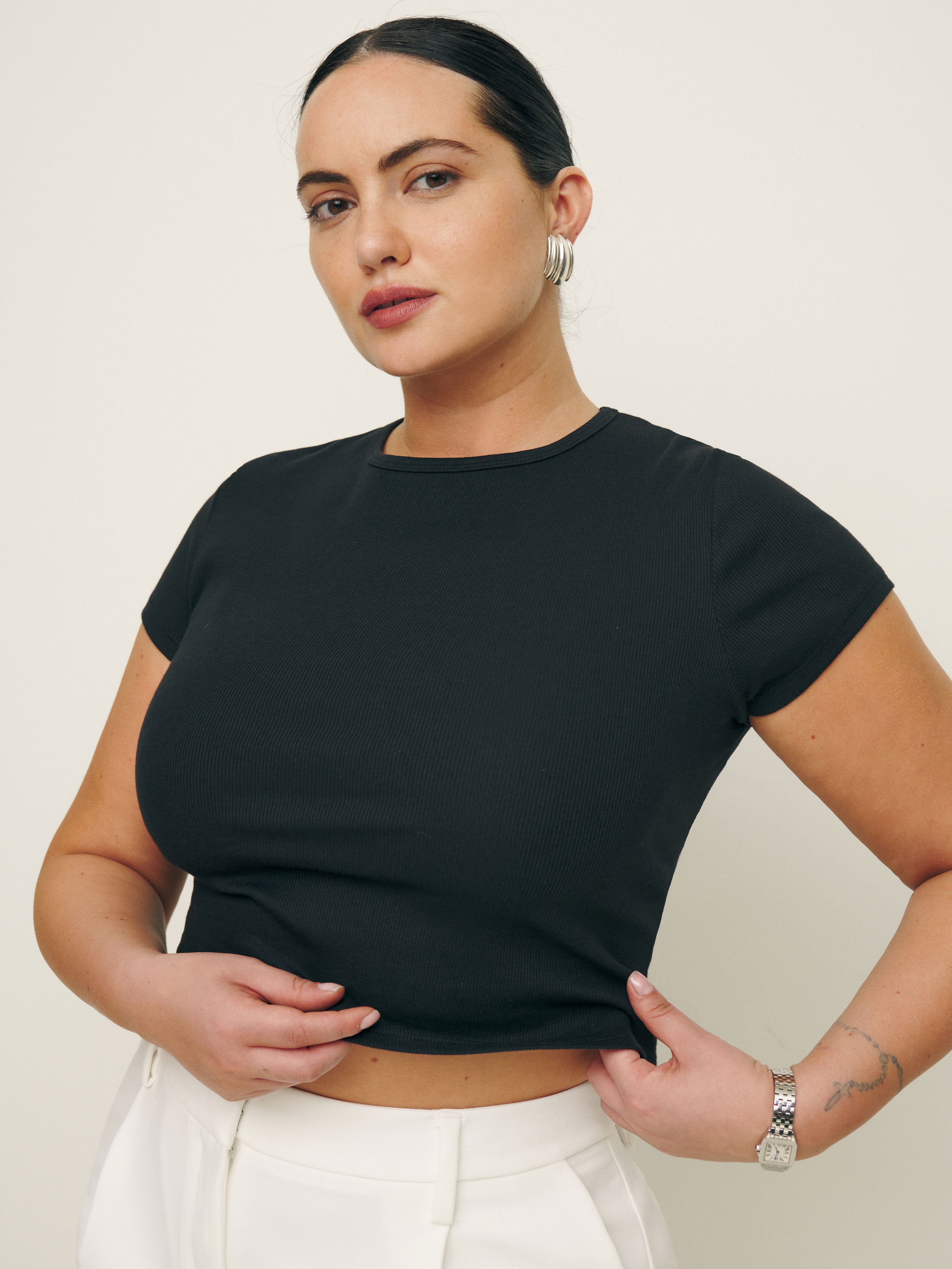 Throw on and go. Shop the Muse Tee ES from Reformation, a tight fitting tee that is...