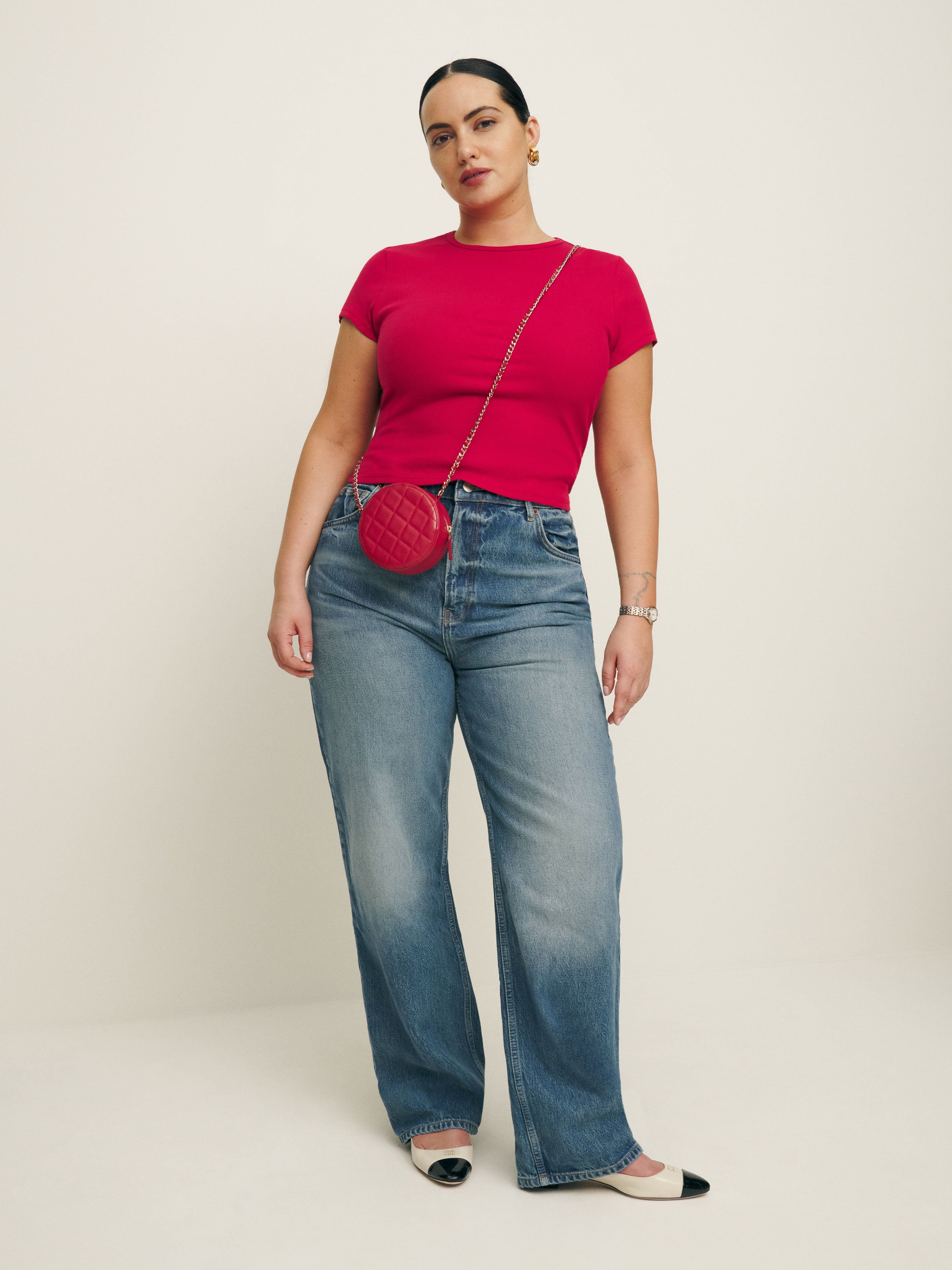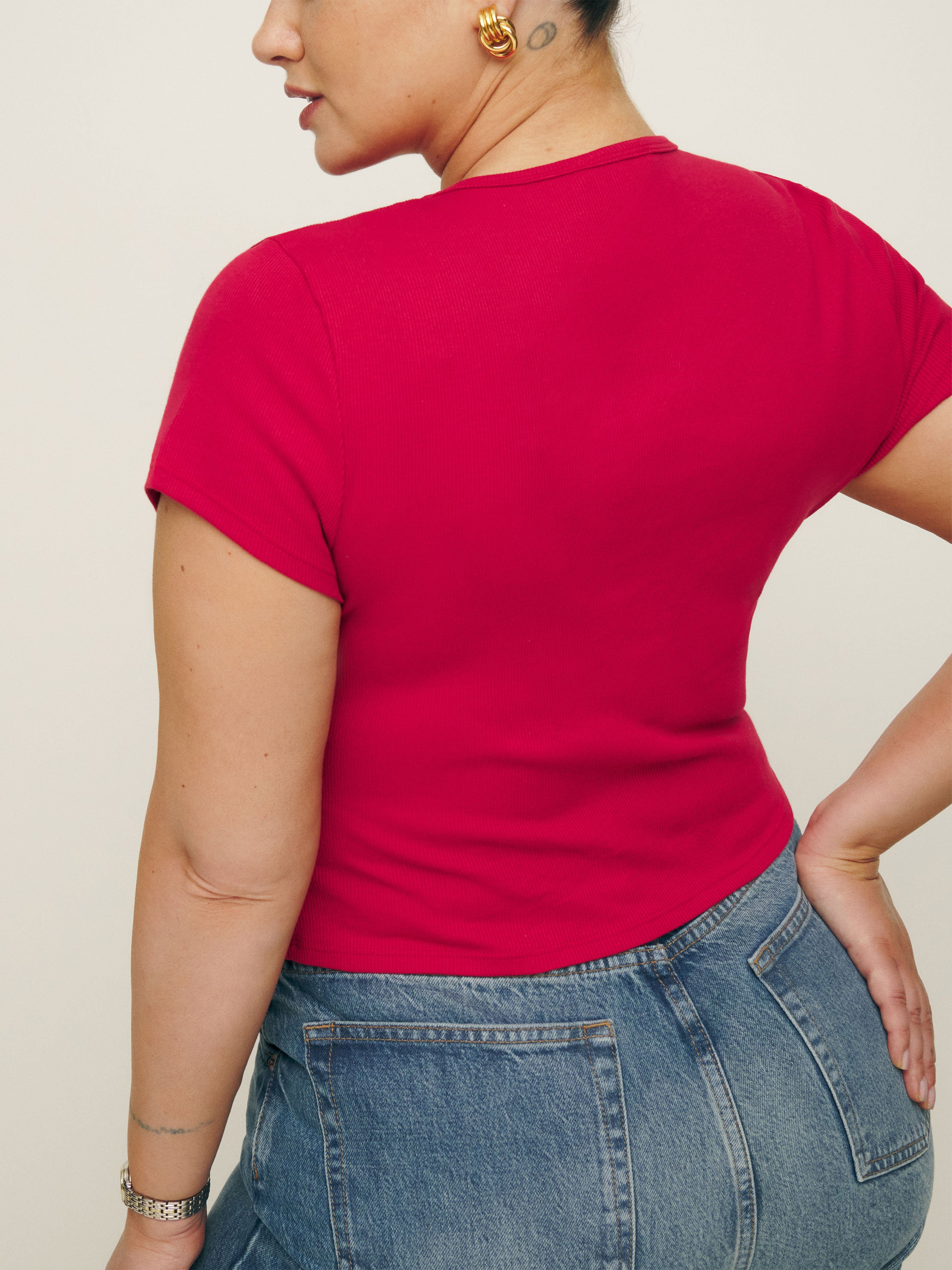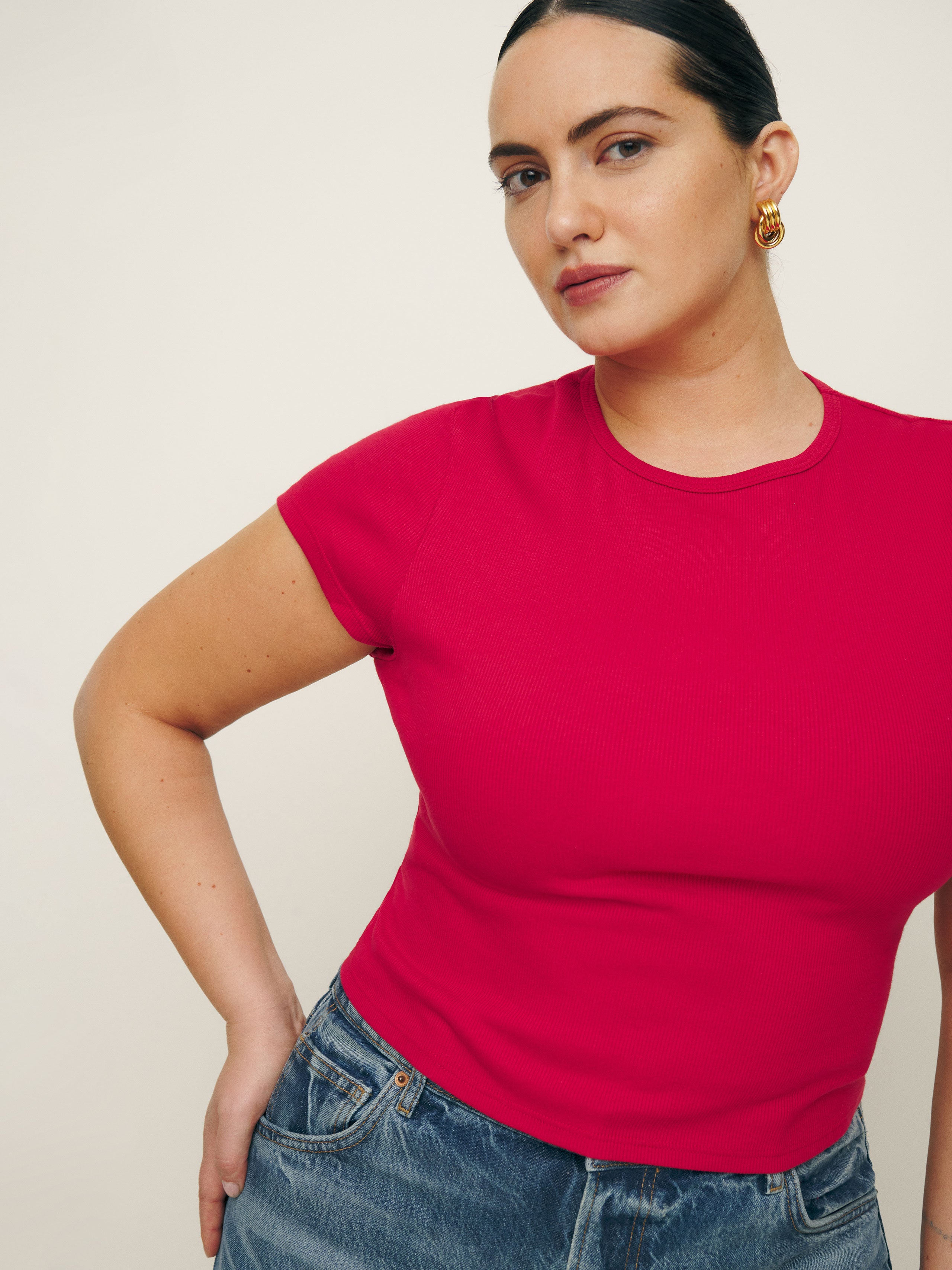Throw on and go. Shop the Muse Tee ES from Reformation, a tight fitting tee that is cropped at the waist.