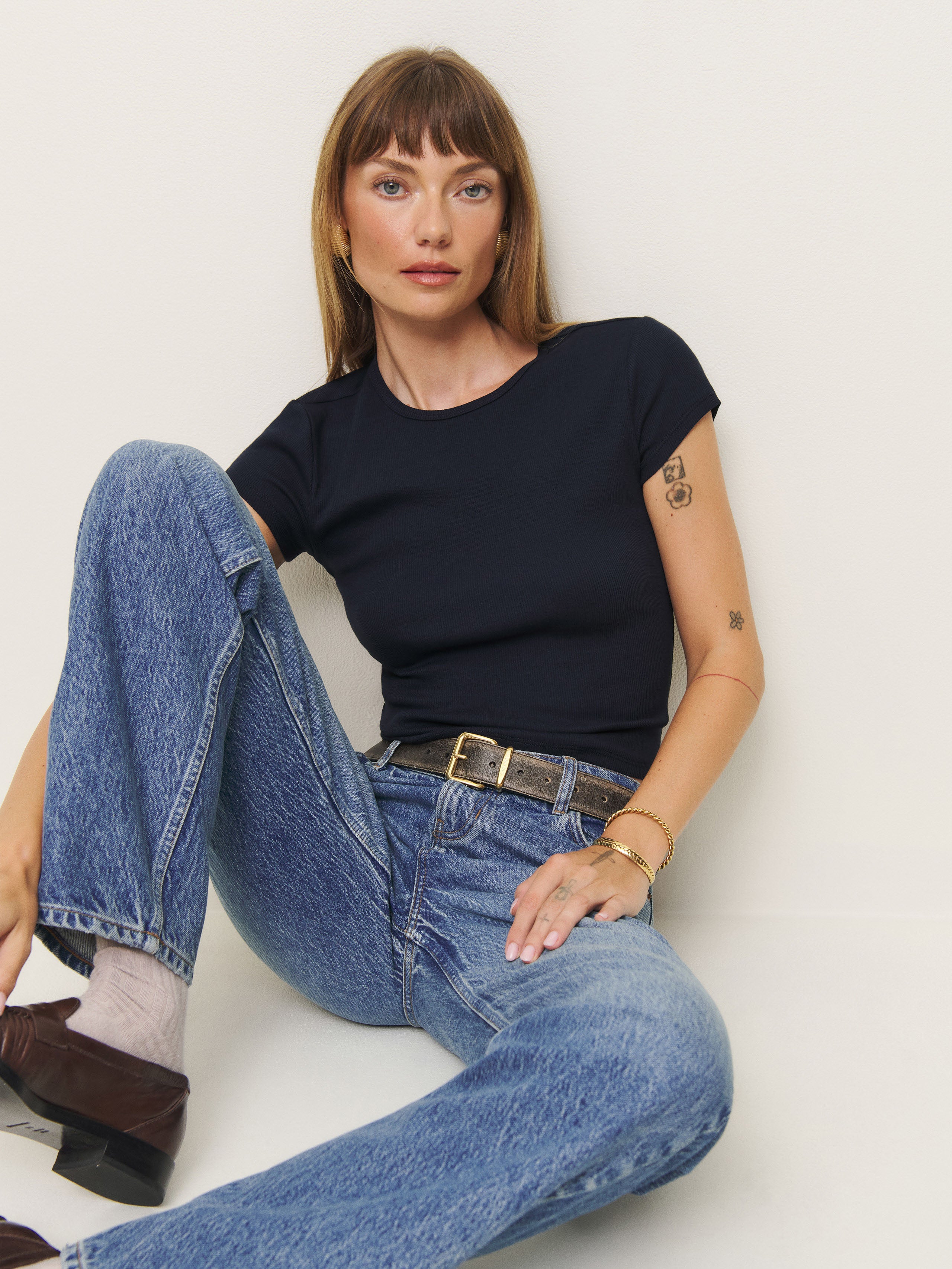 Throw on and go. The Muse is a tight fitting tee that is cropped at the waist.