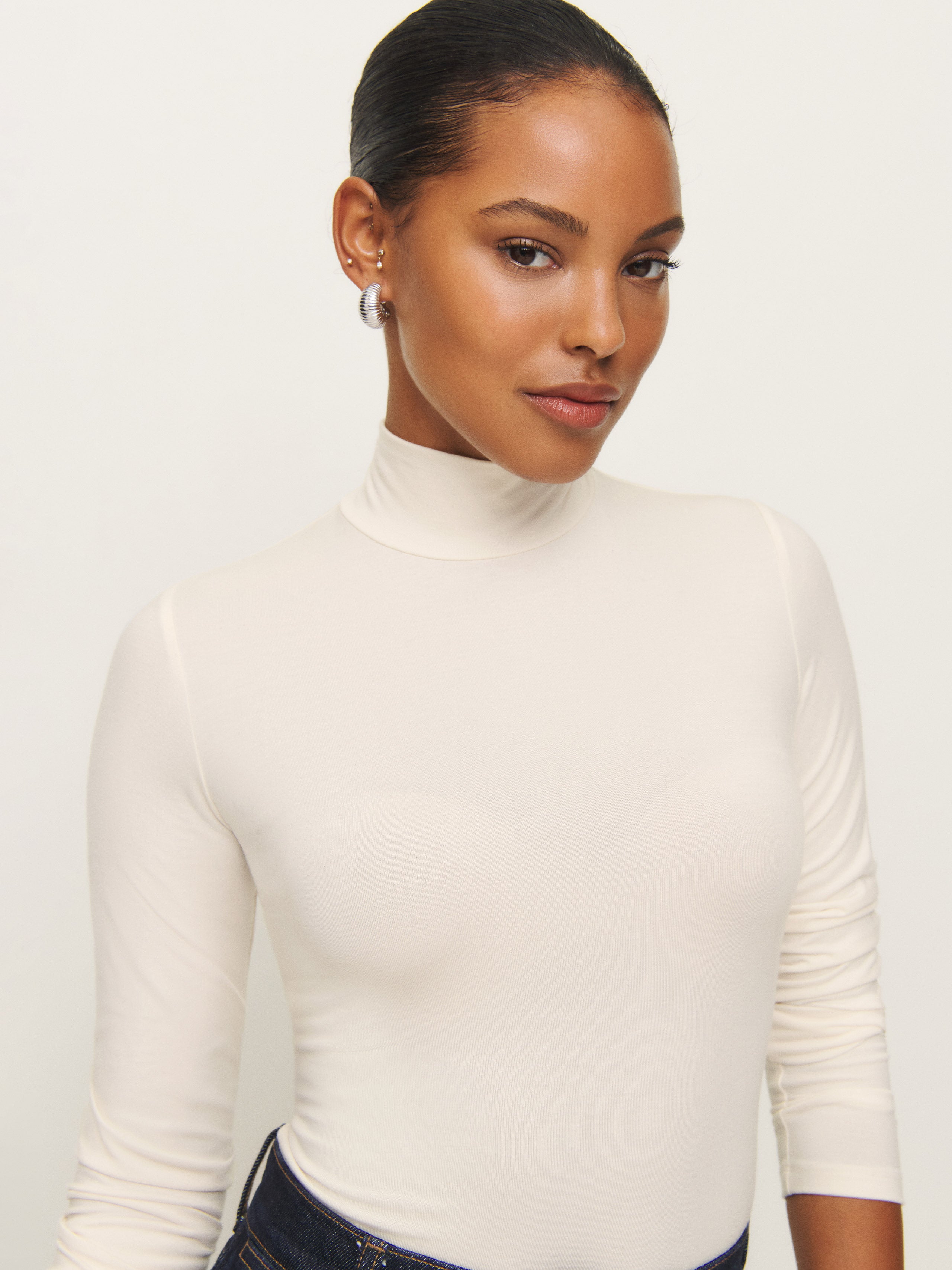 Layer up. Shop the Nell Knit Top from Reformation, a long-sleeve knit top with a turtle neckline.