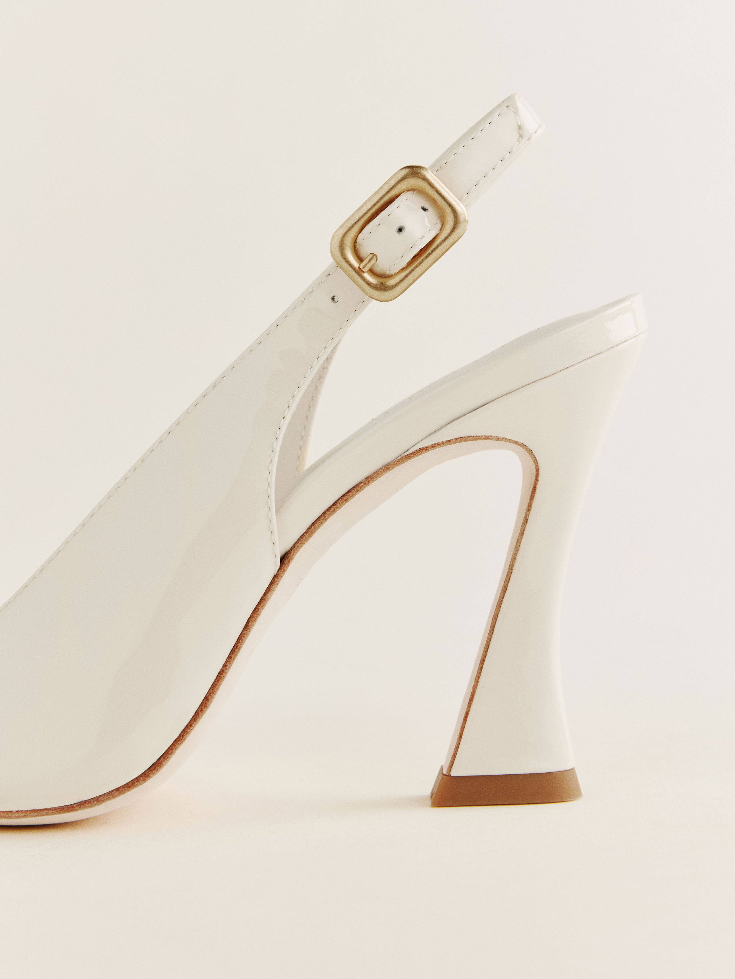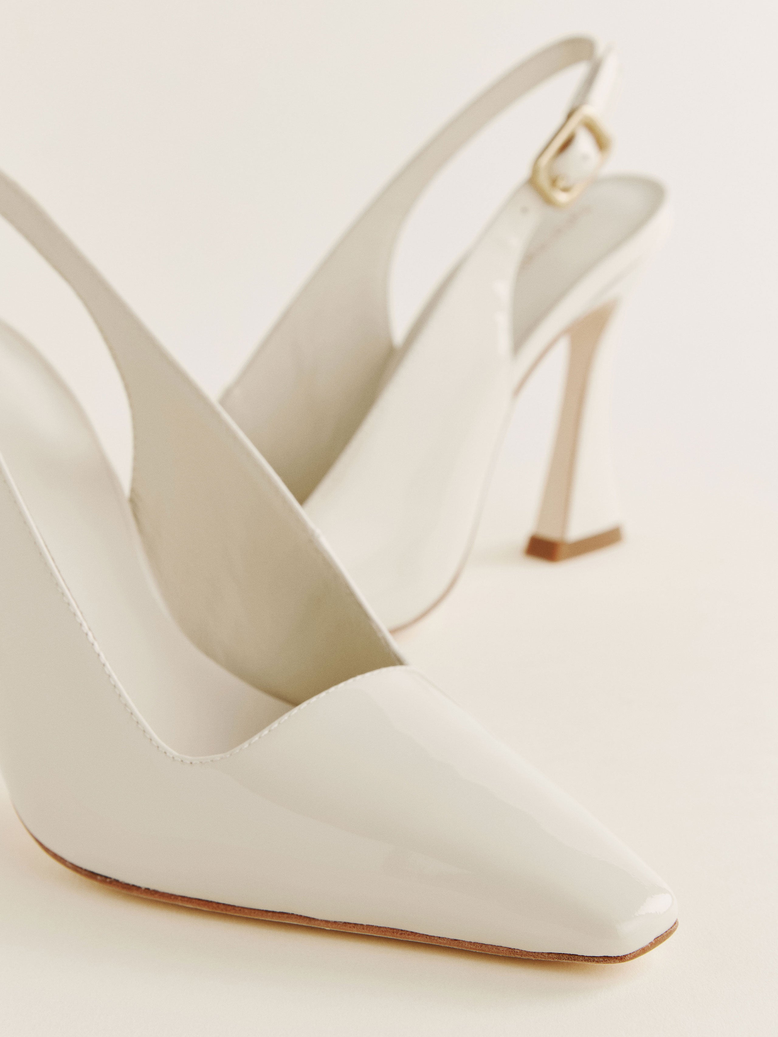 Wear me. Shop the Nour Heeled Slingback from Reformation, a heeled slingback with a pointed toe.