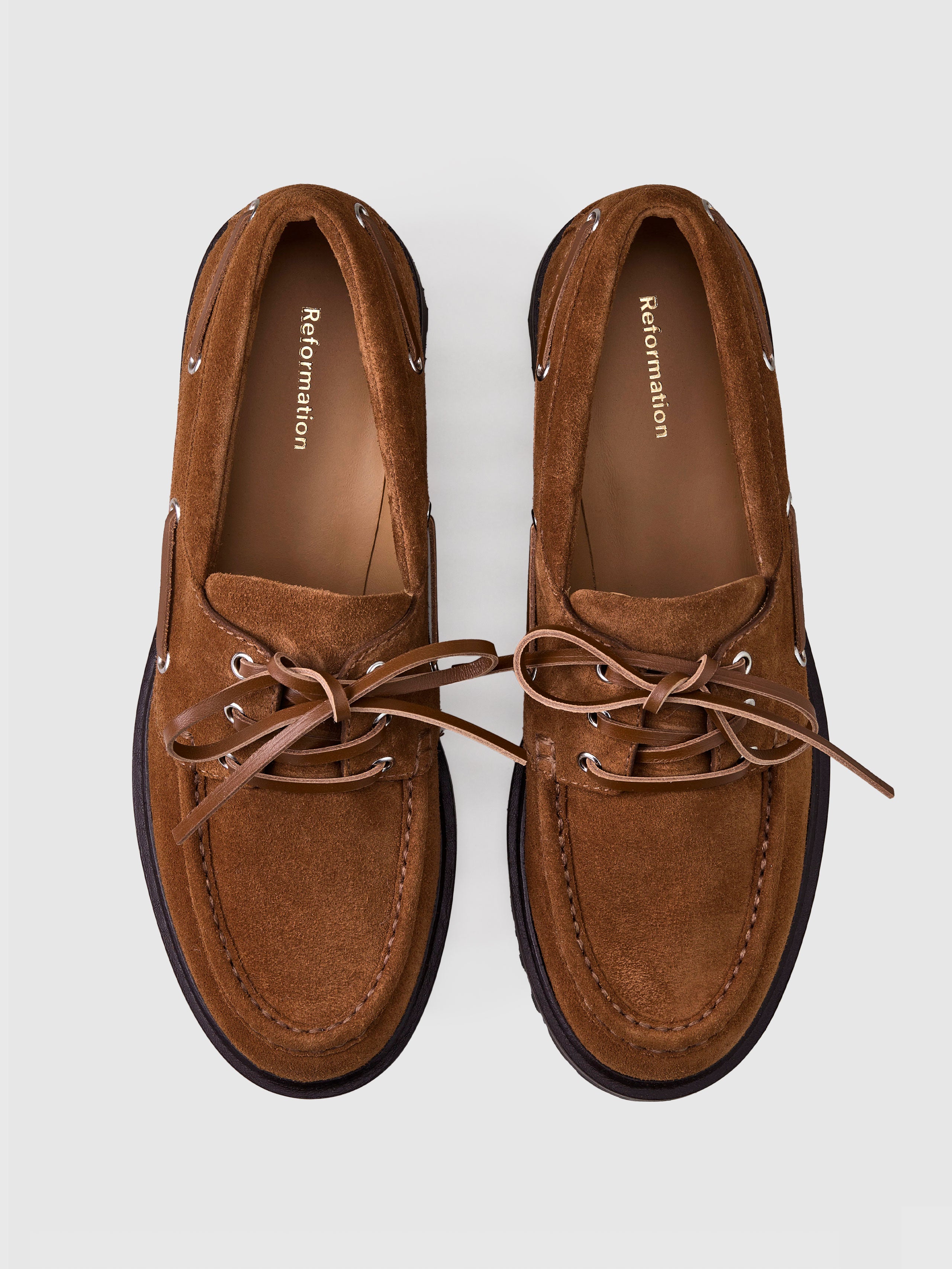 Treat your feet. Shop the Oakland Boat Loafer from Reformation, a boat style loafer with a round toe and adjustable tie.
