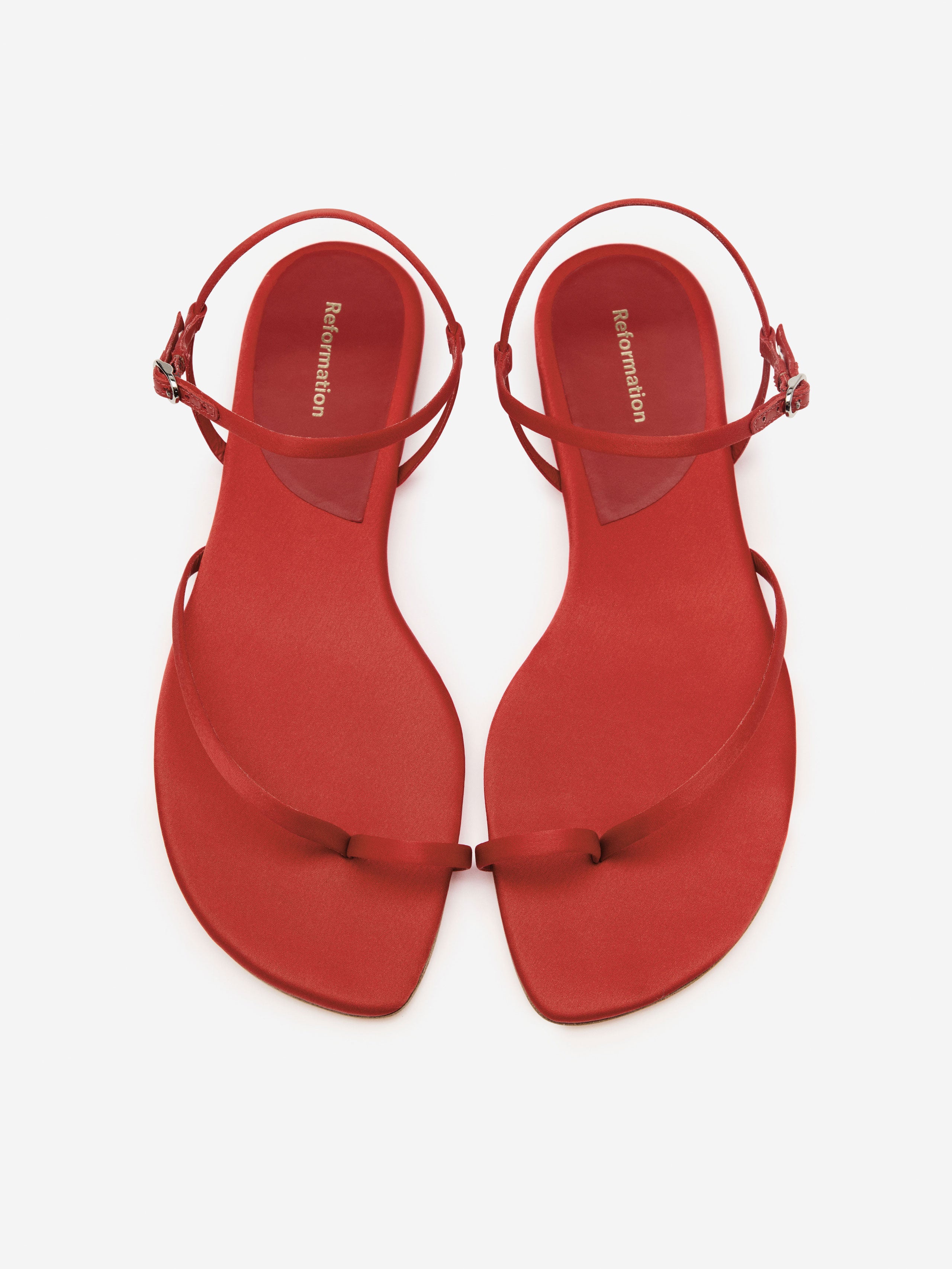 Wear me. Shop the Oceane Flat Sandal from Reformation, a flat sandal with an asymmetrical strap, toe ring, and adjustable ankle strap.