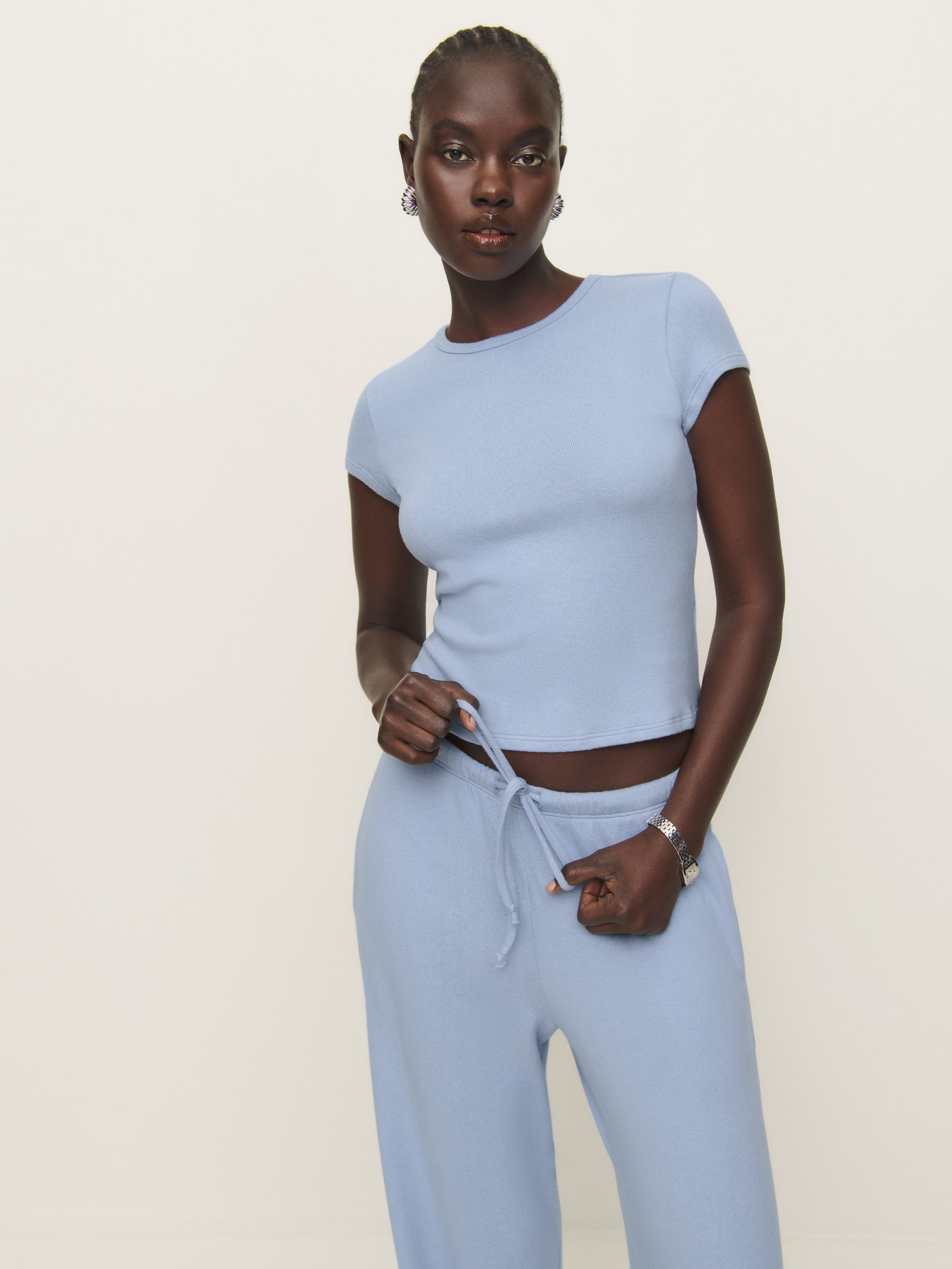Soft and stretchy if you're into that. Shop the Olive Knit Top from Reformation, a fitted tee...