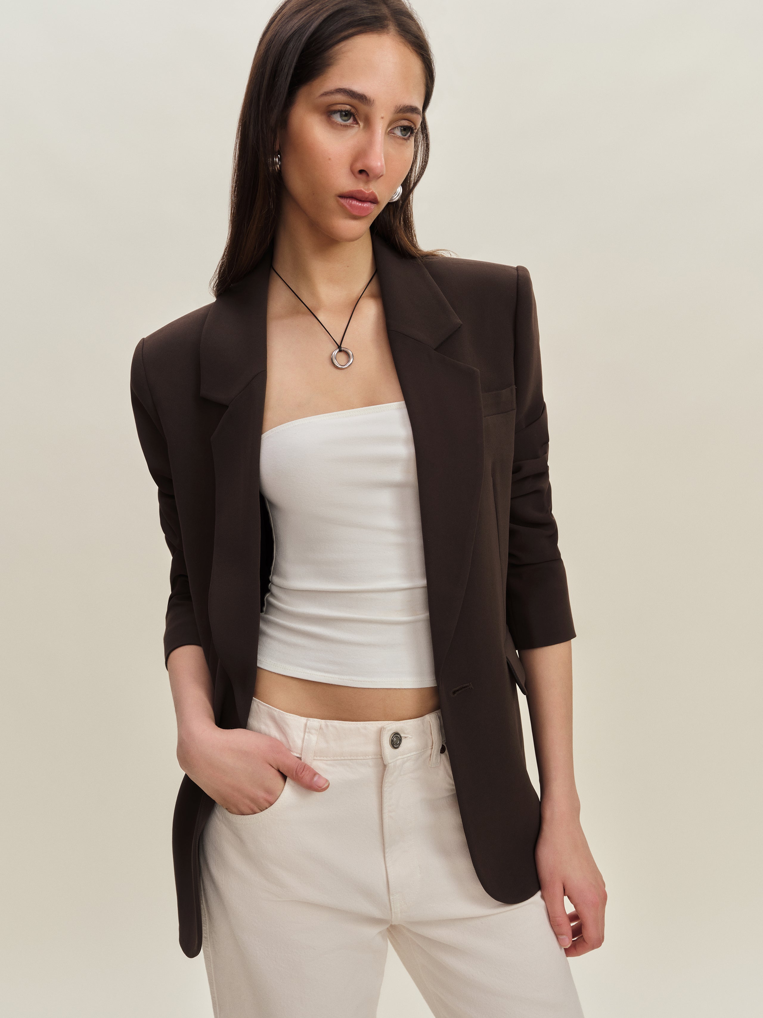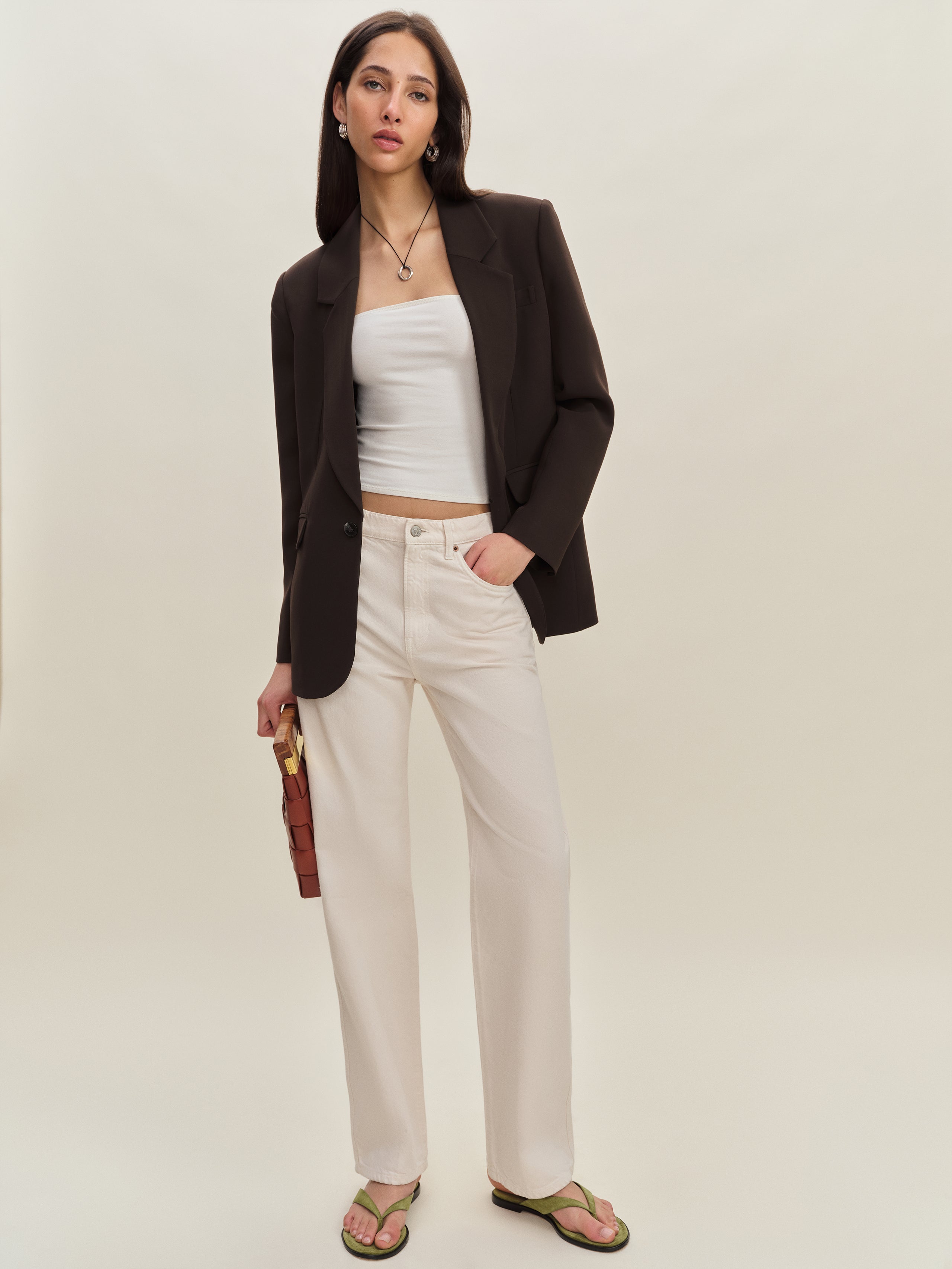 Layer up. Shop the Parker Blazer from Reformation, a single-breasted blazer with a button closure and front pockets.