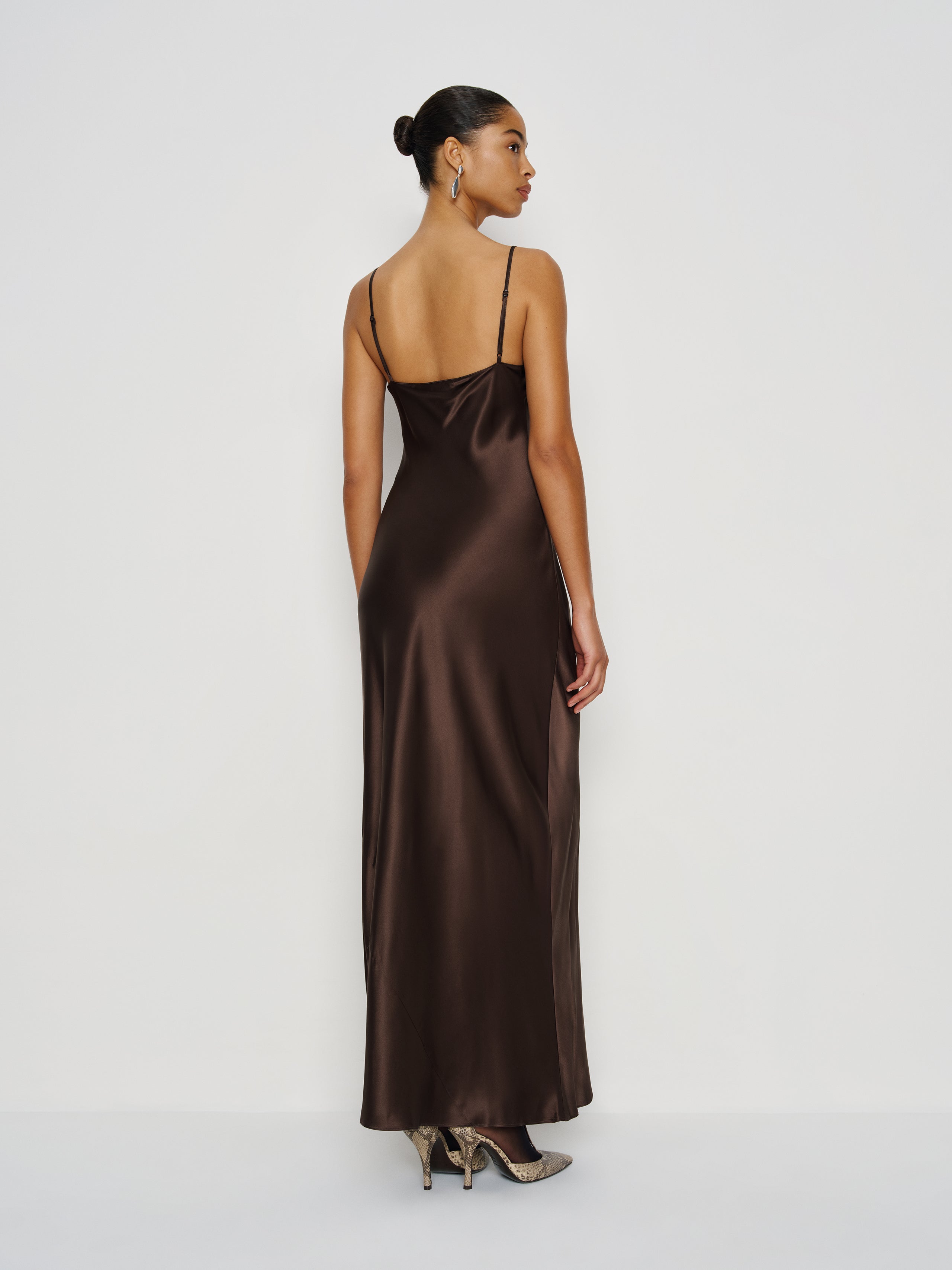 Someone's fancy. The Parma is a long, ankle length slip dress that's slim fitting throughout. It has...